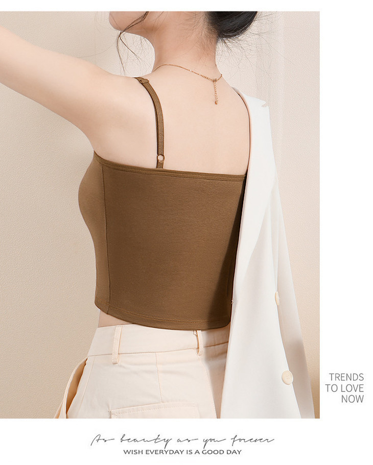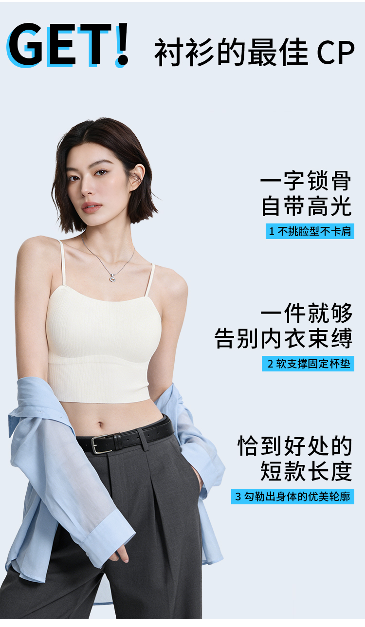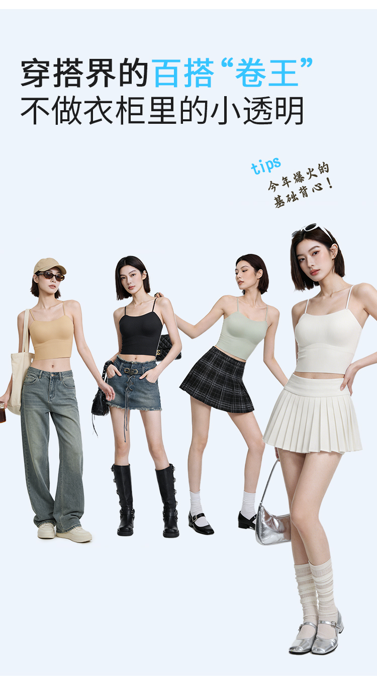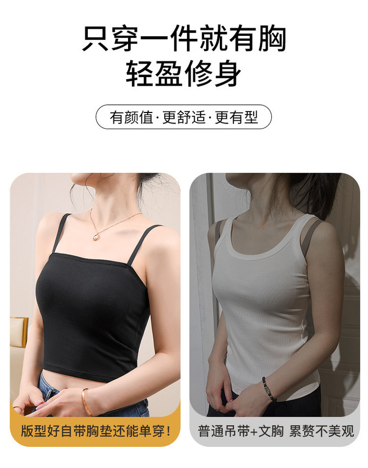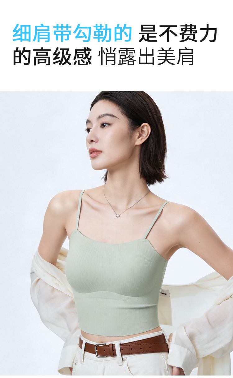 C2-【免穿文胸 罩杯一体】无痕美背背心女内搭外穿修身显瘦打底吊带 悦雅风清+春冉茜茜