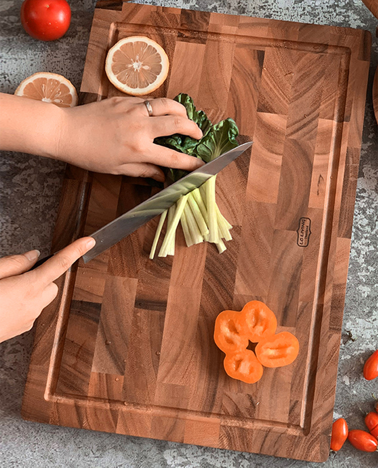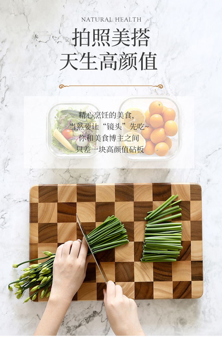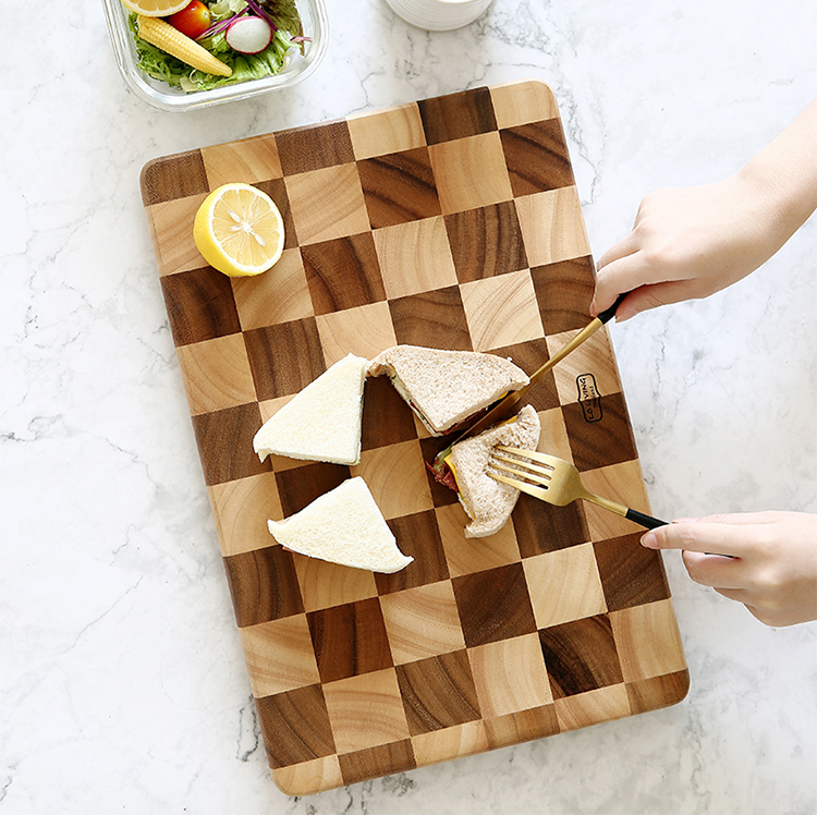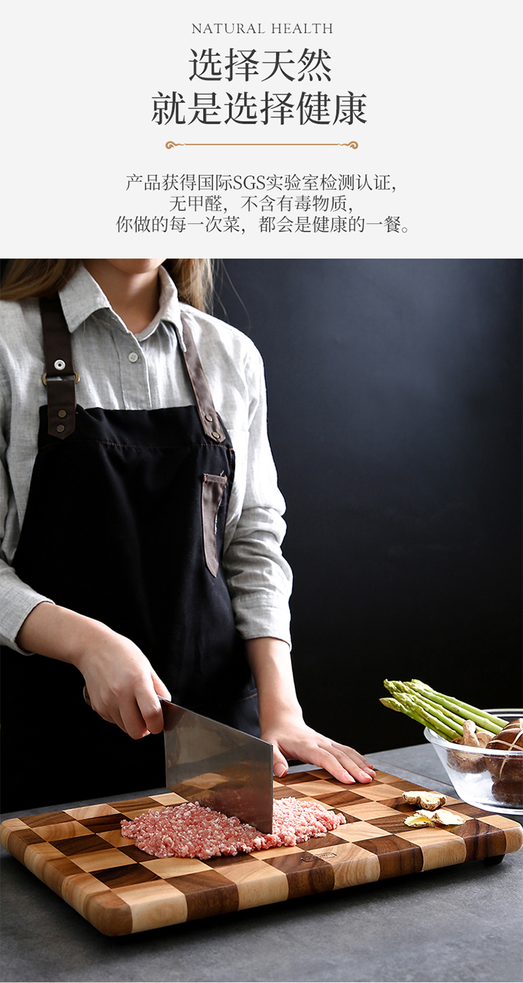 【文怡之选】泰国 Lcliving 相思木菜板系列 棋盘格 提手菜板 木质细腻 打磨平滑 高颜值切菜板 家用实木砧板
