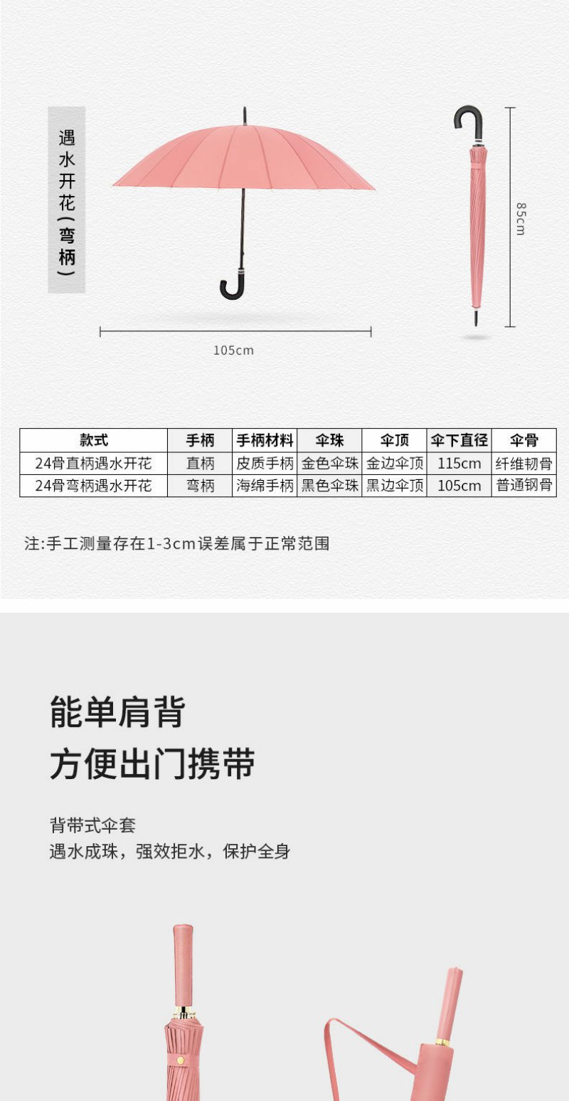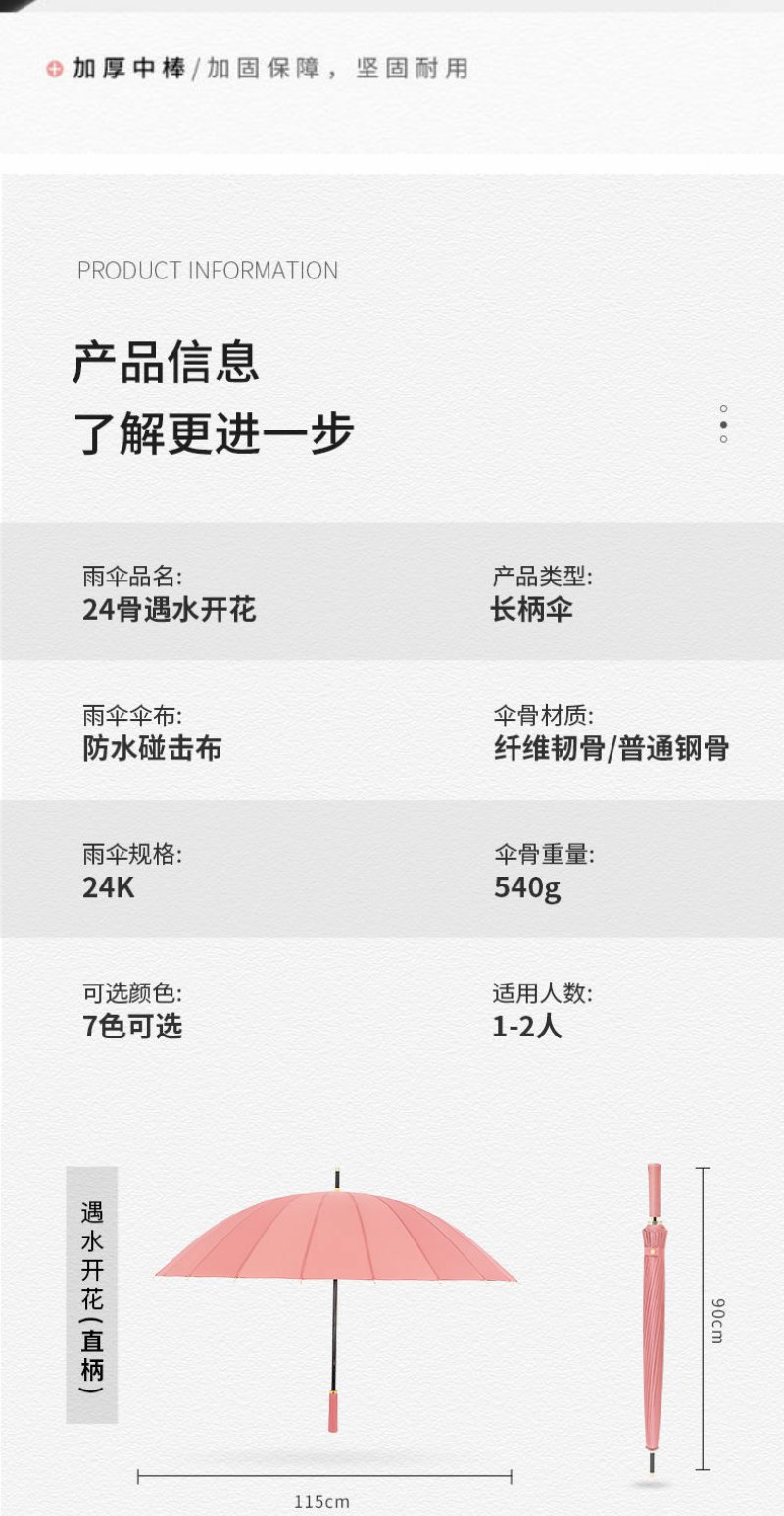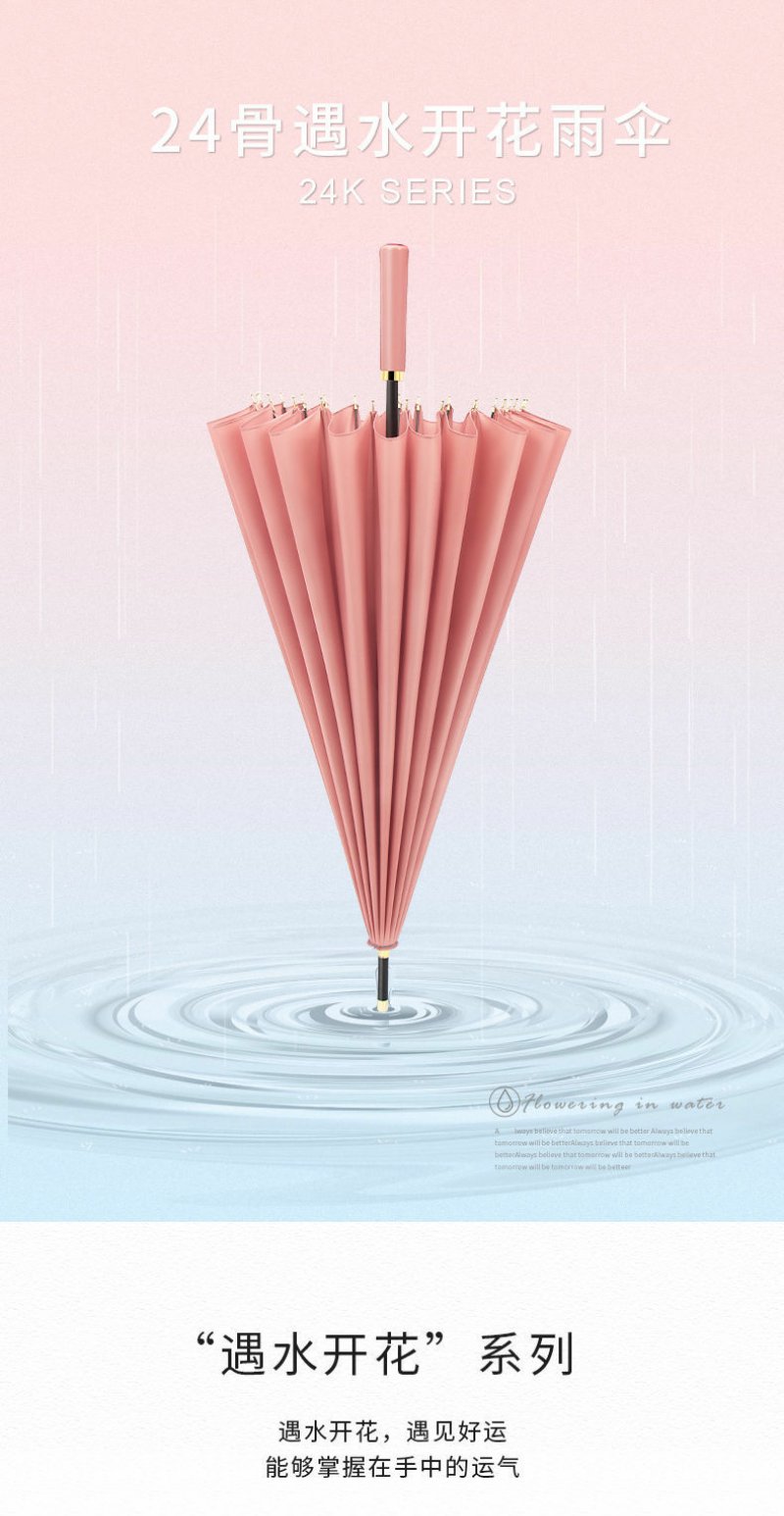 24骨遇水开花 高颜值韩版简约长柄大雨伞晴雨两用