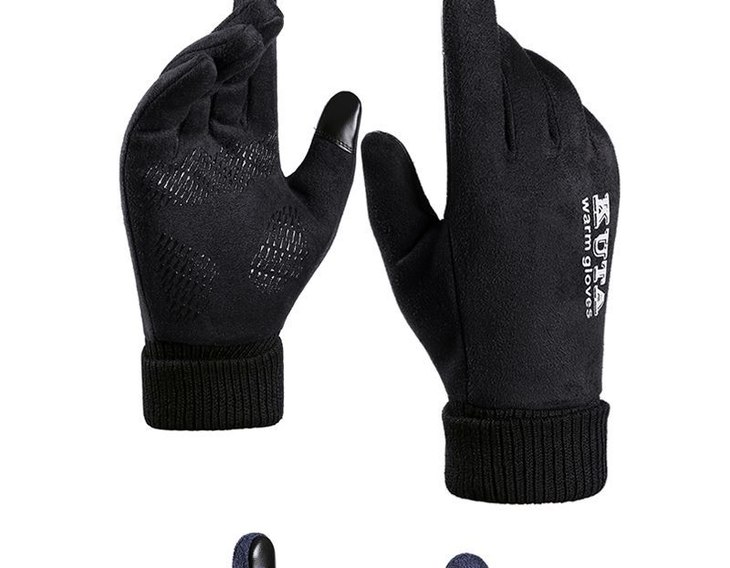 麂皮绒手套保暖加绒触屏防滑男女手套户外运动秋冬季骑行开车手套