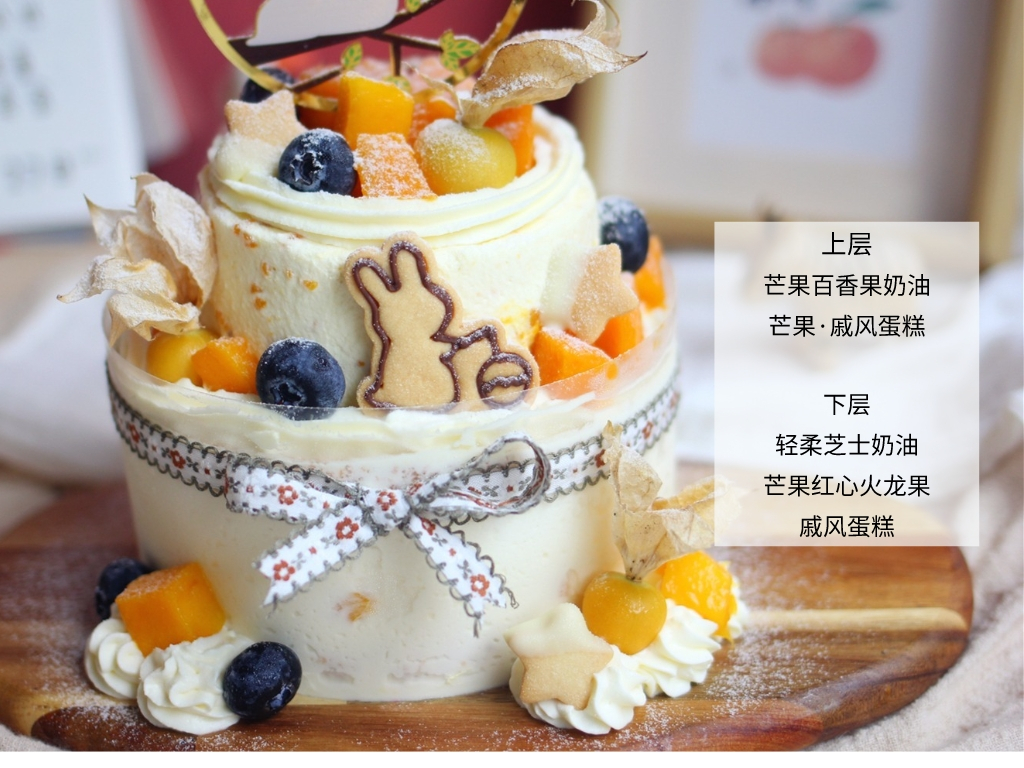 芒果百香果奶油的酸甜,芝士奶油的馥郁,搭配清新的芒果,是很柔和而不甜腻的味道~