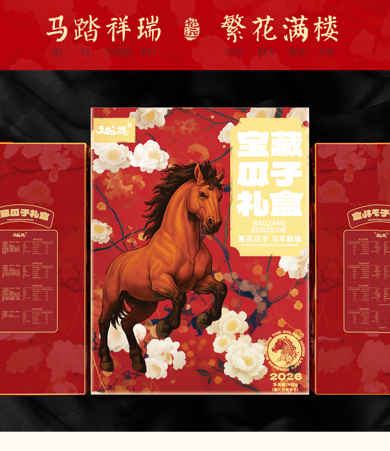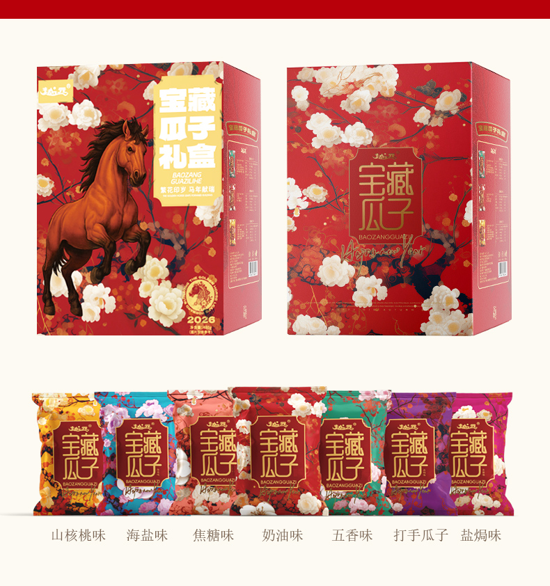 马年越远宝藏瓜子礼盒480g/盒 7种口味混合装炒货葵花籽网红零食年货伴手送礼