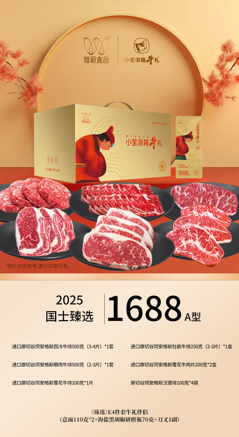 唯新 小笙浙箱牛礼《国士臻选》1688A型牛排套餐礼盒