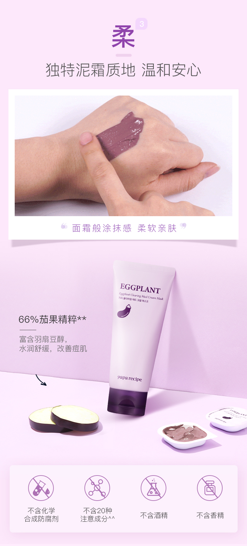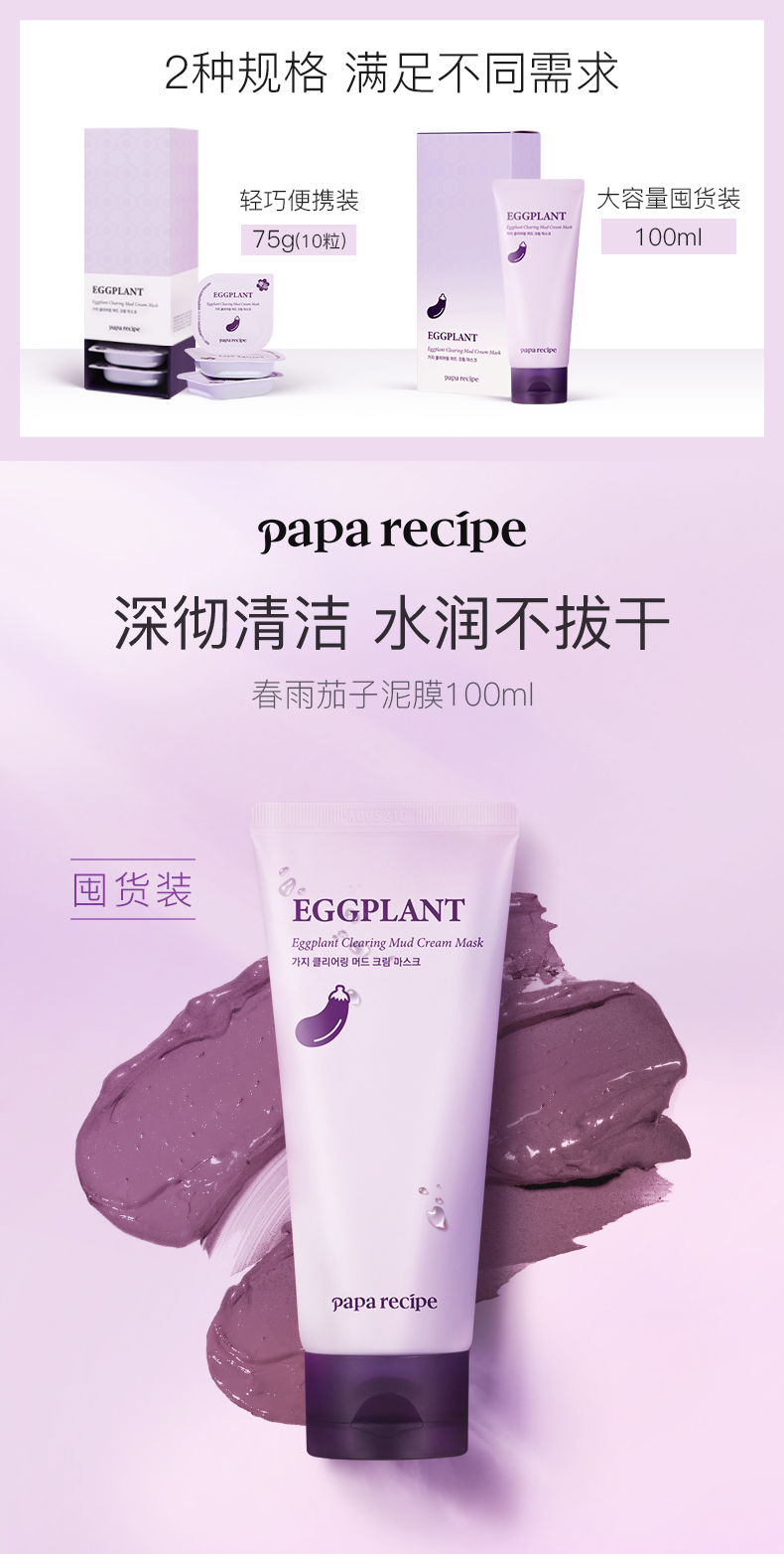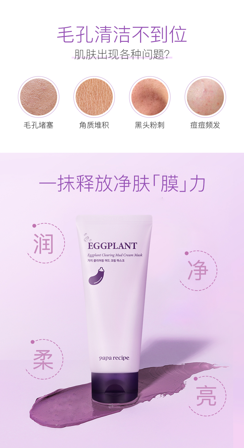 韩国 papa recipe 春雨茄子面膜泥膜深层清洁毛孔去黑头控油保湿涂抹式100ml(茄子泥膜)