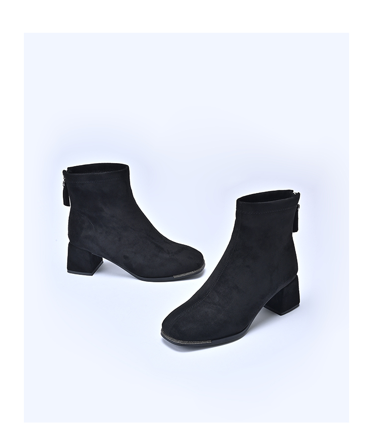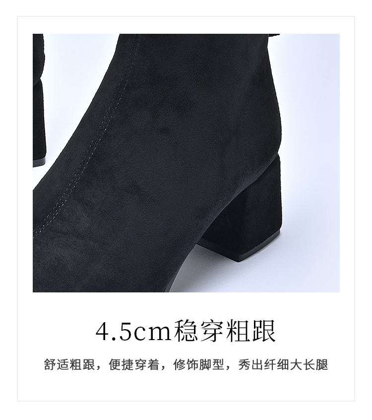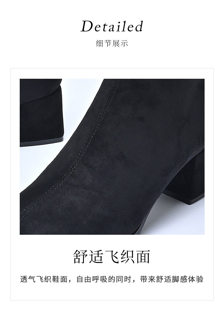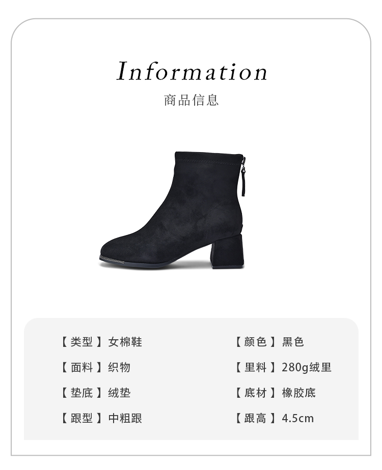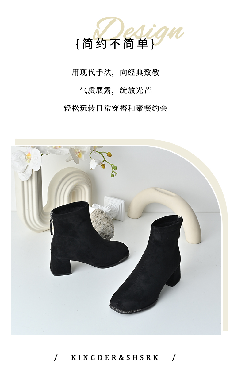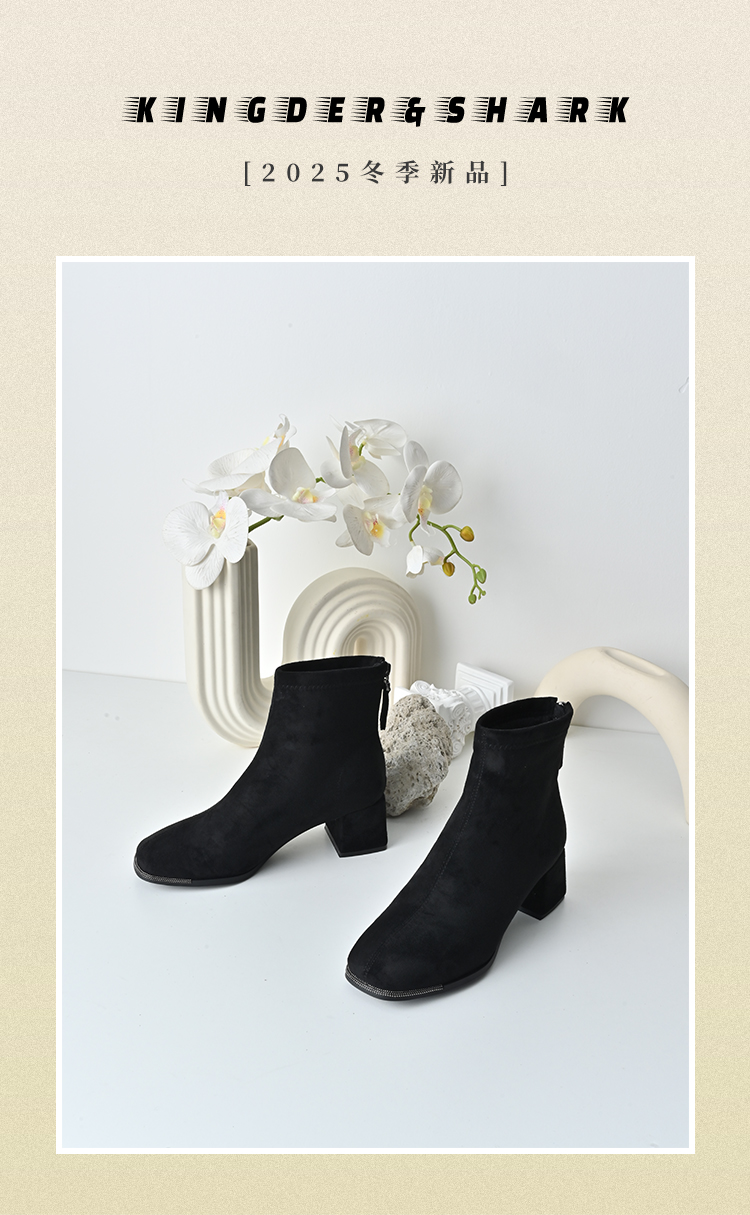 经典鲨2025冬专柜新品黑色圆头加绒保暖中粗跟短靴瘦瘦靴女KC19-558301