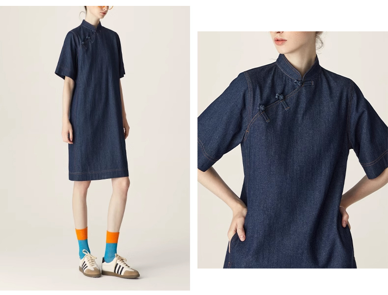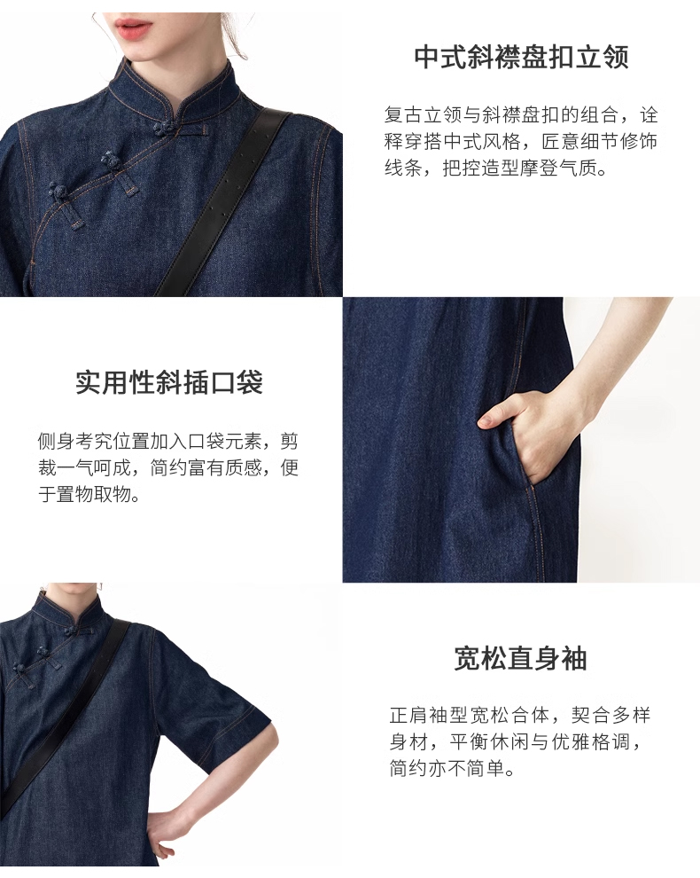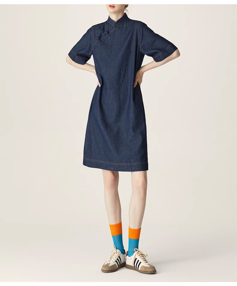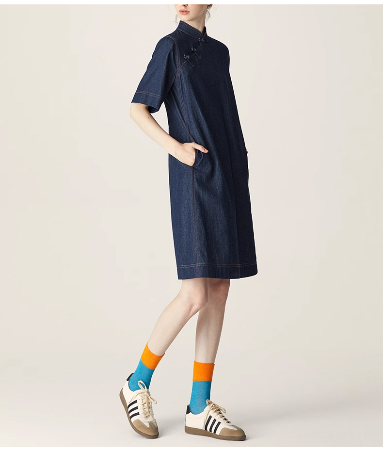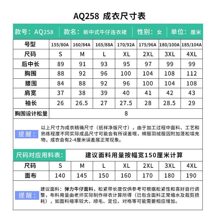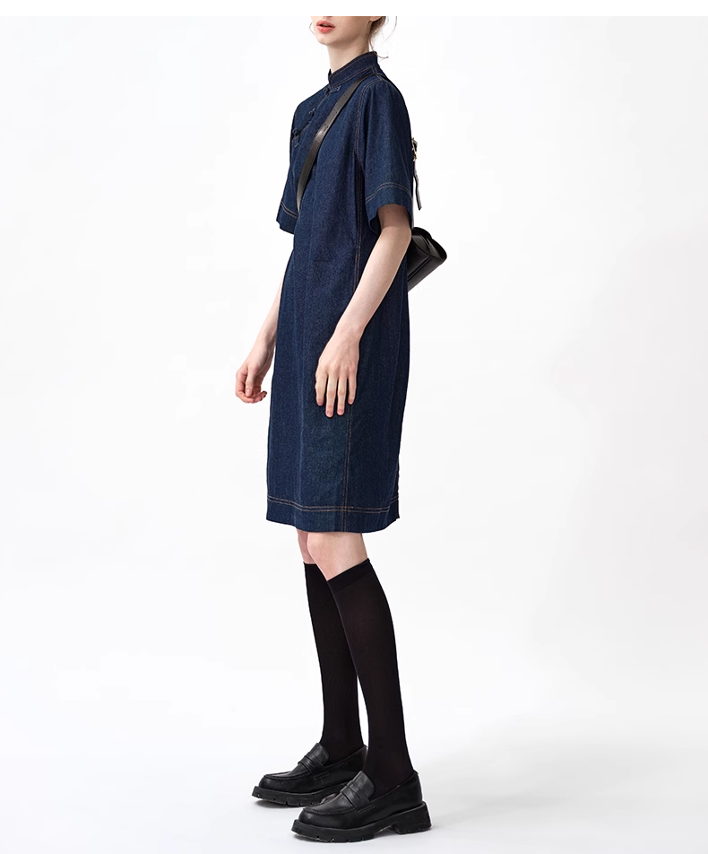 裁缝学苑AQ258新中式牛仔连衣裙纸样小立领女装斜门襟裙子打版裁剪样板
