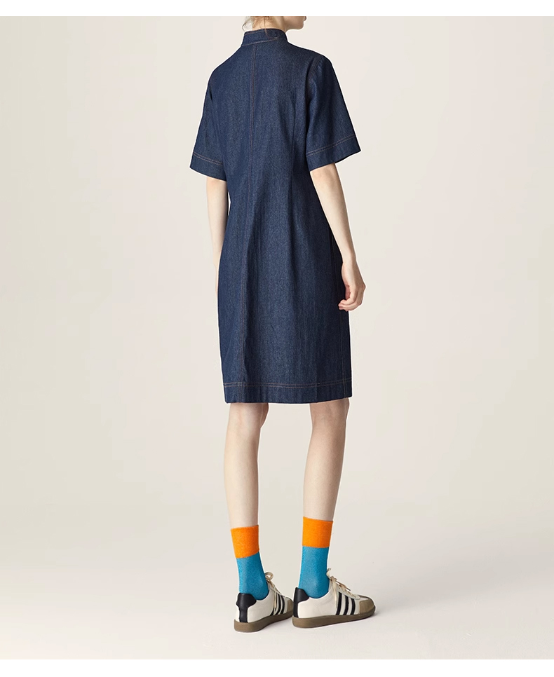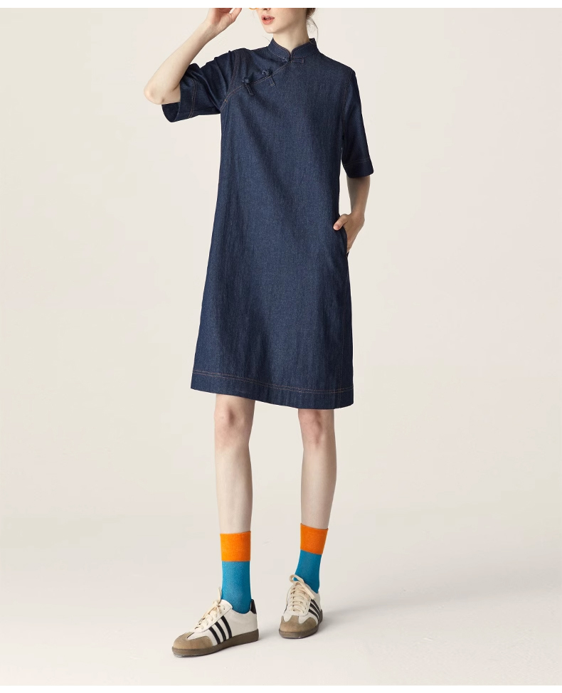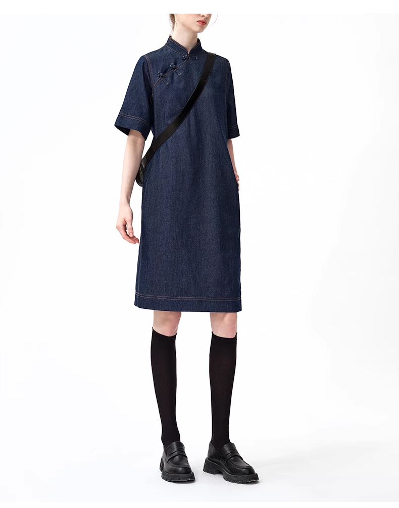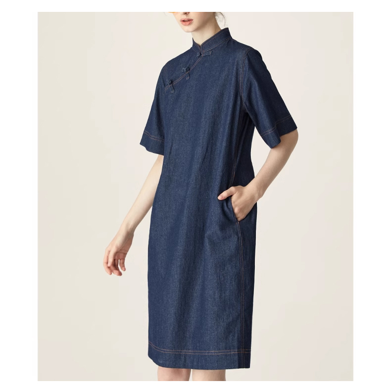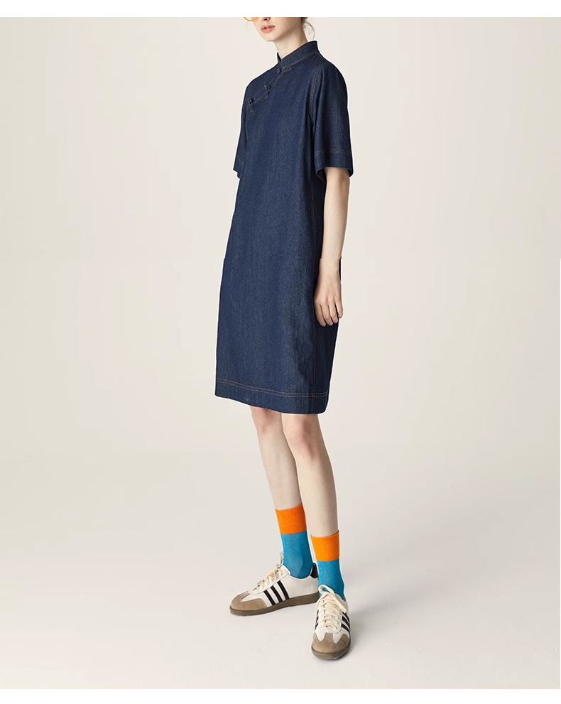 裁缝学苑AQ258新中式牛仔连衣裙纸样小立领女装斜门襟裙子打版裁剪样板