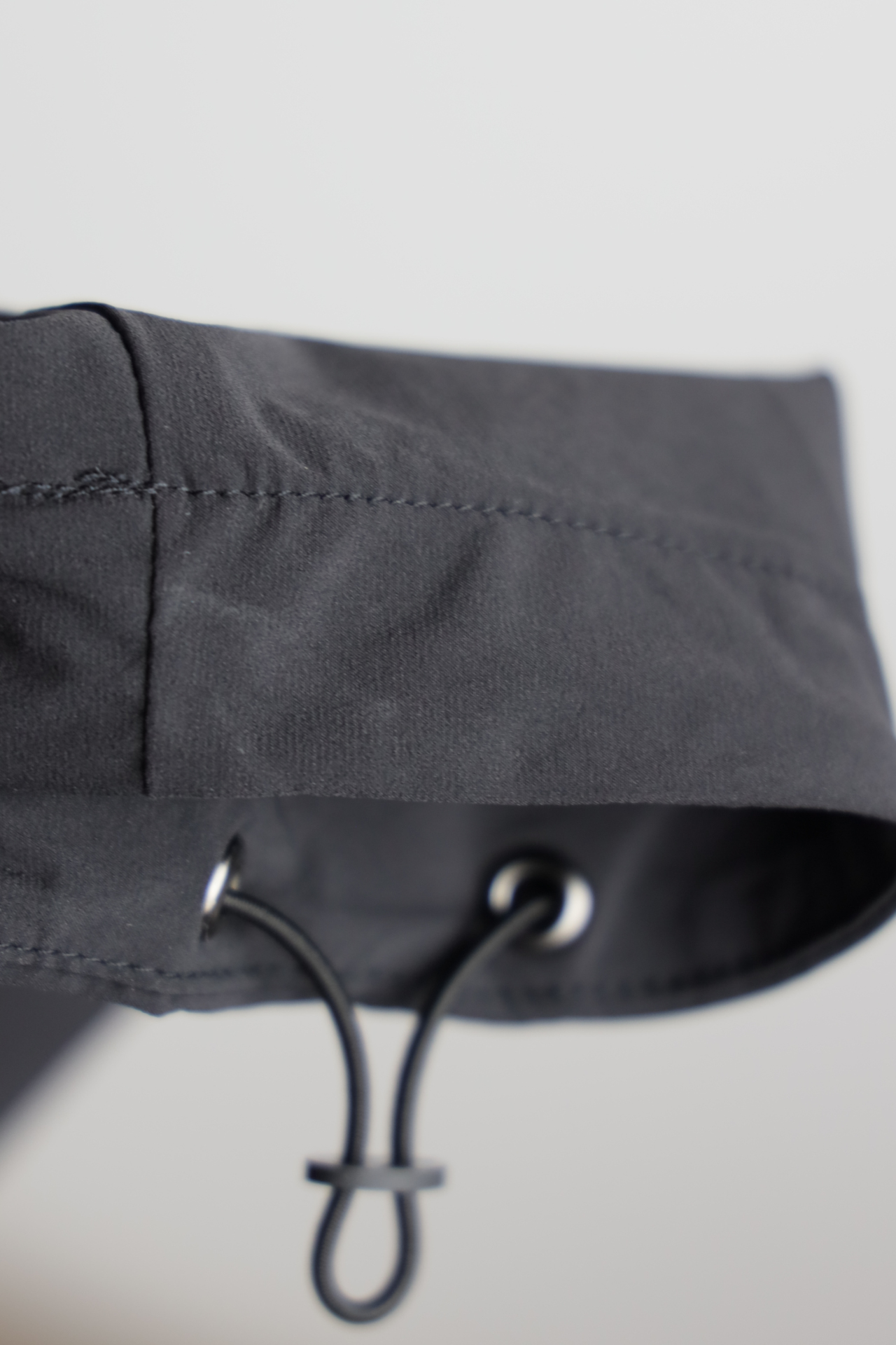 宽松阔腿直筒版型,下摆裤口有松紧弹力可收紧