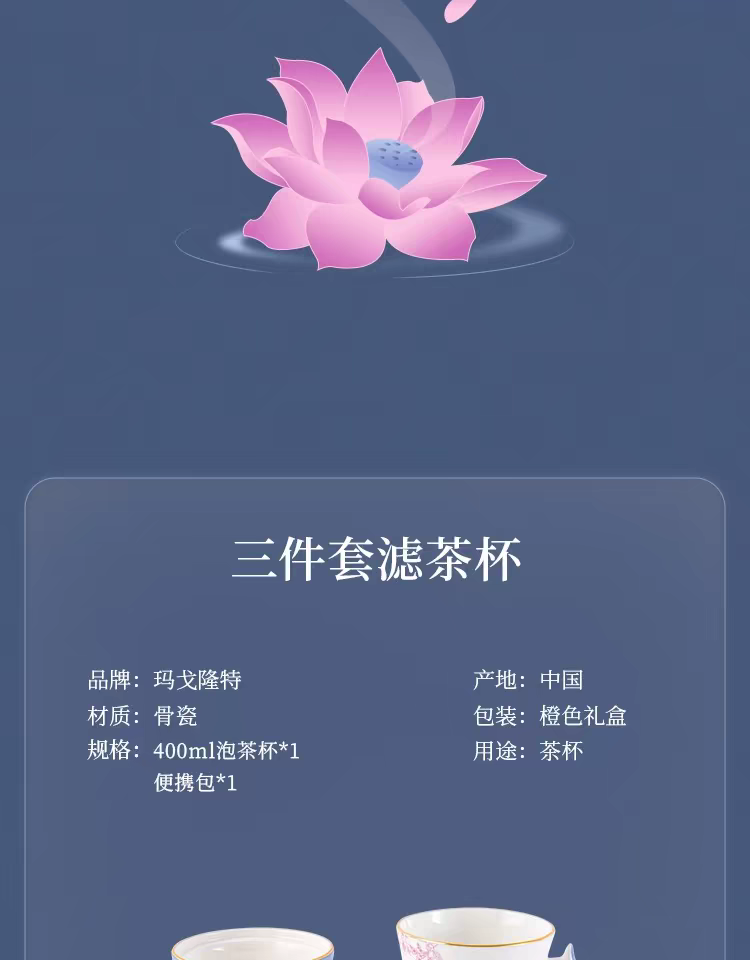【云粉节】10楼玛戈隆特 荷莲盛宴 三件套滤茶杯(1#旅行) 吊牌价768元 活动价538元