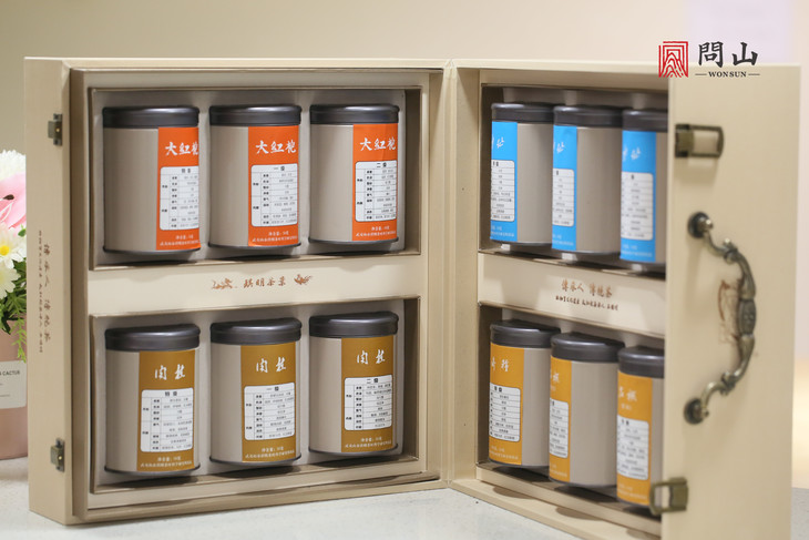 大红袍、水仙、肉桂特级、一级、二级各三个等级,茗枞(北斗)、茗枞(奇兰)、奇种特级各一罐。