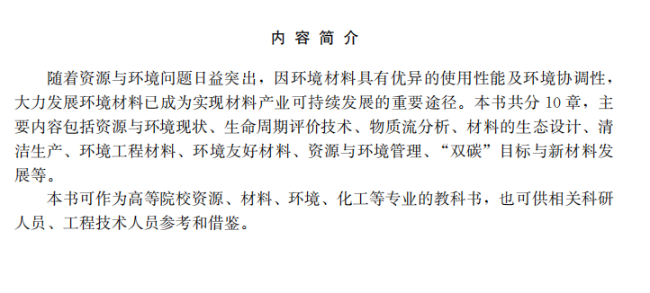 资源与环境材料学/吕宁宁主编. 中国建材工业出版社, 2024. 8 ISBN 9787516041833