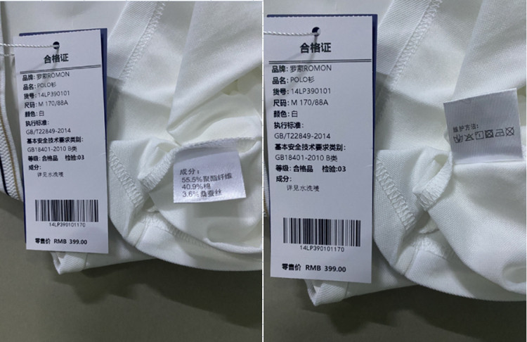 面料:55.5%聚酯纤维 40.9%棉 3.6%桑蚕丝