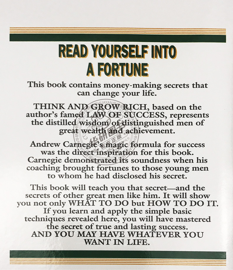 Think and Grow Rich《思考致富》旨在提供可行之法,指引读者通过思考实现富有。