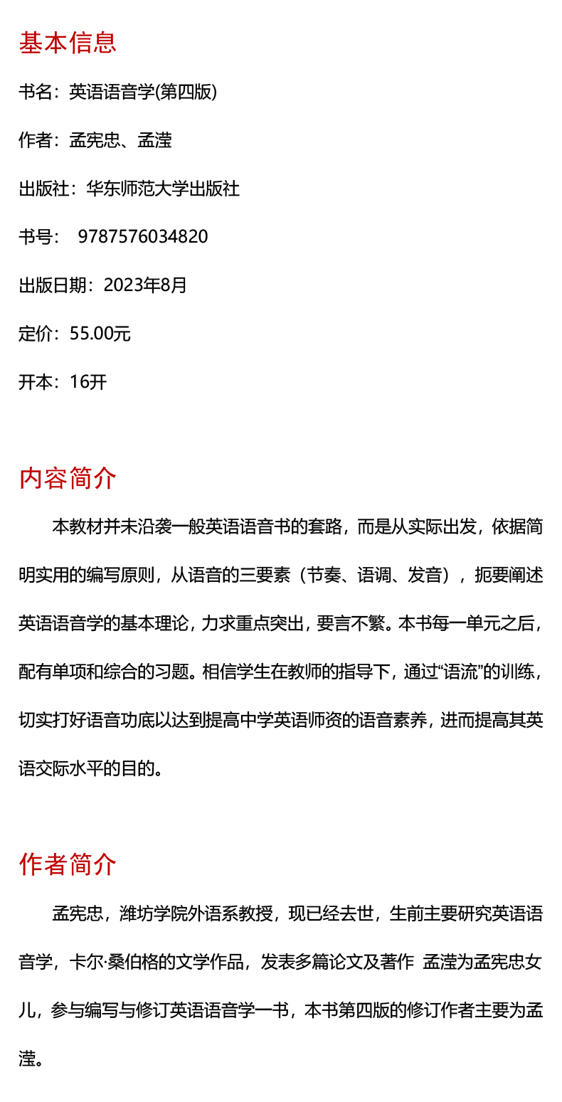 英语语音学 第四版 孟宪忠 高等师范院校英语语音教材 英语教育