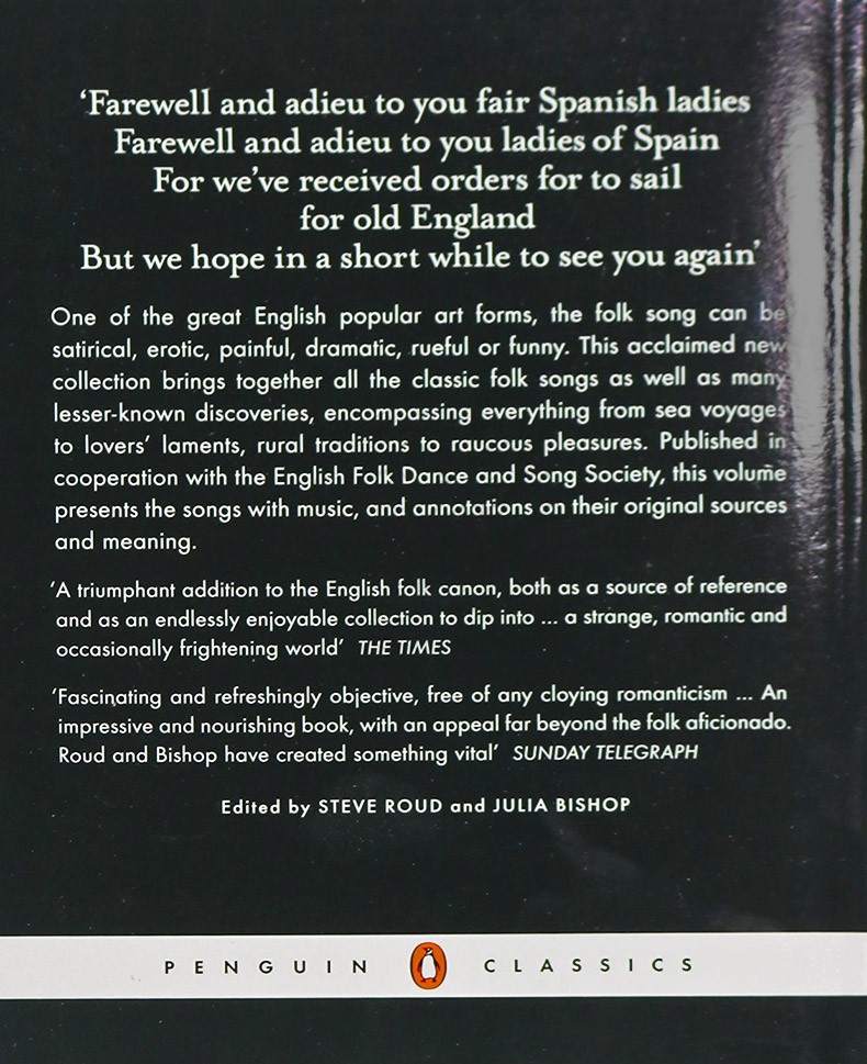 One of the great English popular art forms, the folk song can be painful, satirical, erotic, dramatic, rueful or funny. This magical new collection brings together all the classic folk songs as well as many lesser-known discoveries, complete with music and annotations on their original sources and meaning. Published in cooperation with the English Folk Dance and Song Society, it is a worthy successor to Ralph Vaughan Williams and A. L. Lloyd's original Penguin Book of English Folk Songs.