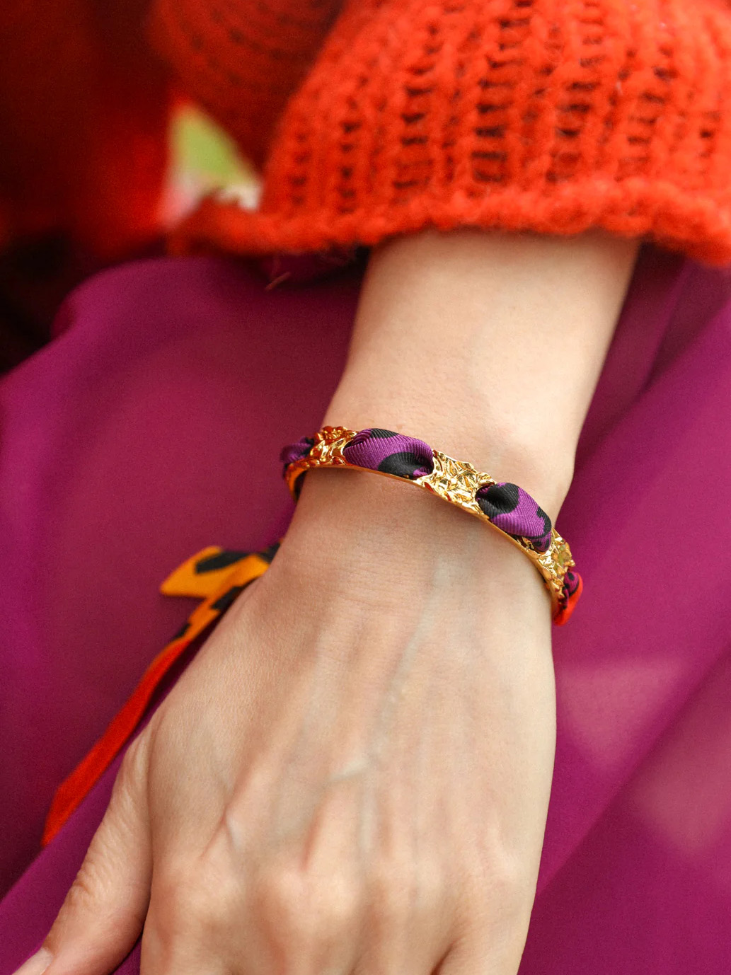 订购14周到|AN-NEE-FEERIE-藤蔓-橘红色 夏帕诺瓦 1cm 丝巾手镯[法国设计师]