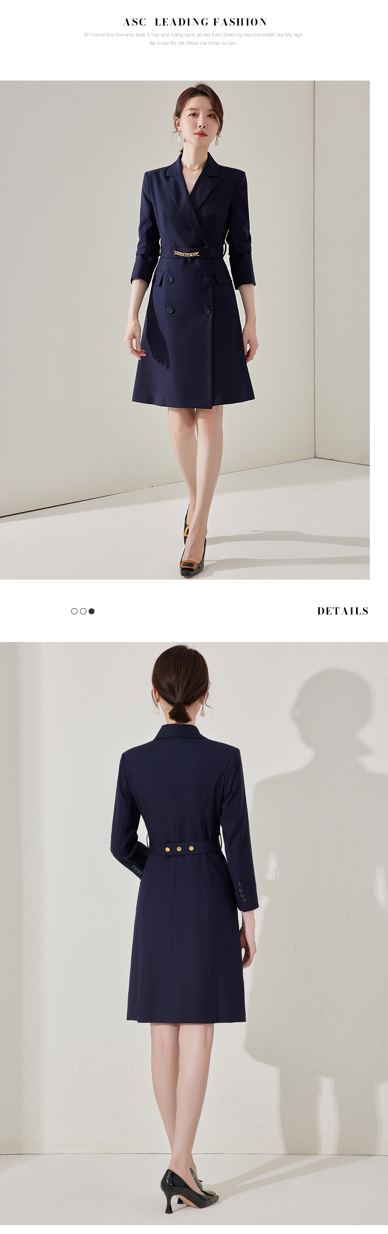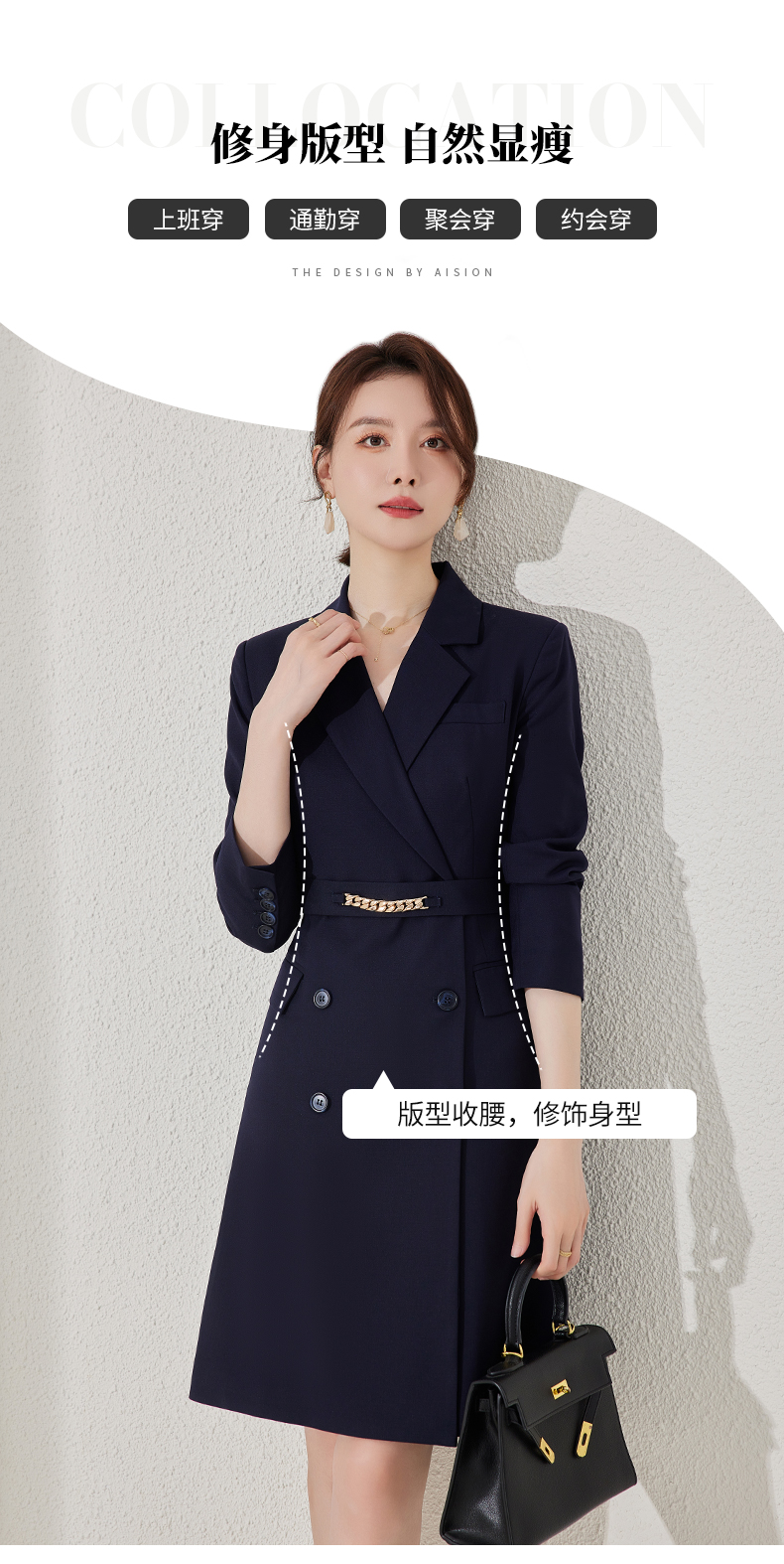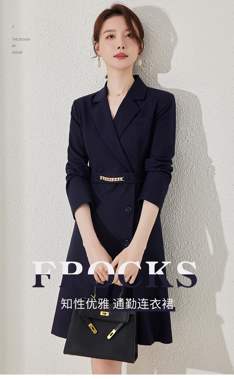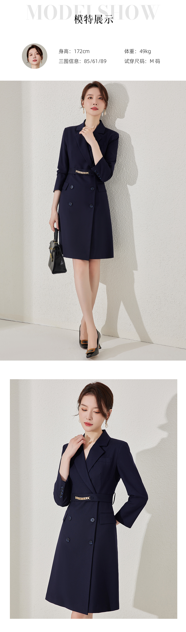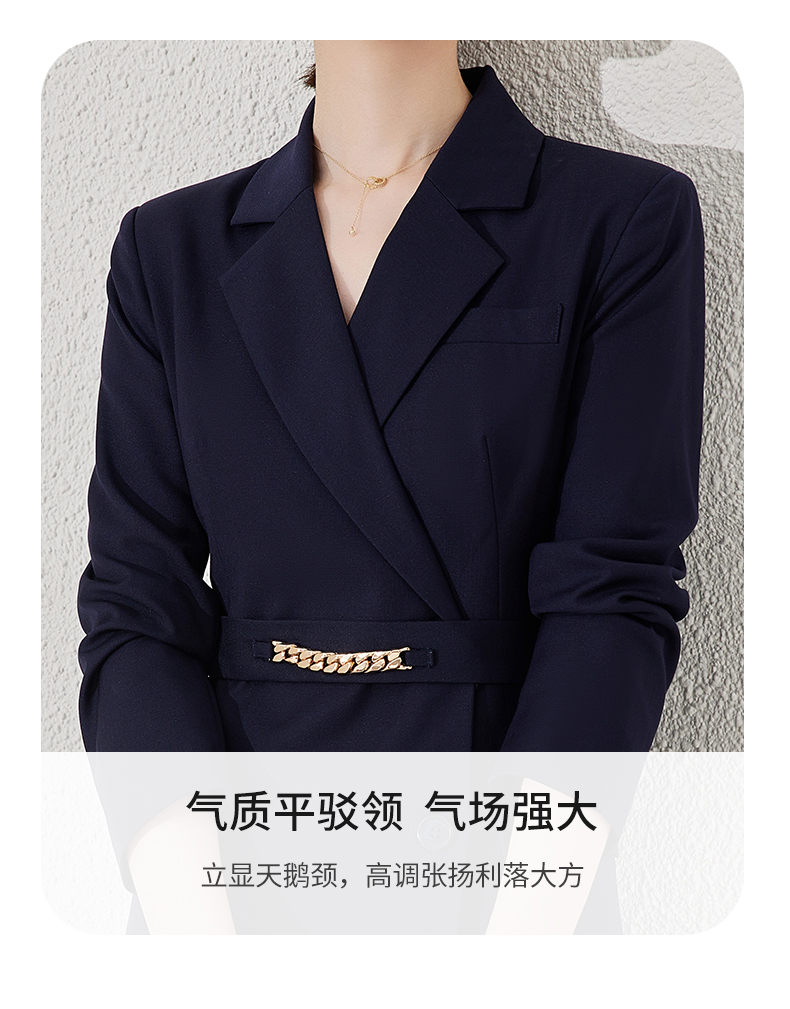藏青色收腰连衣裙早秋新款长袖小个子气质高级感小香风裙子工作服