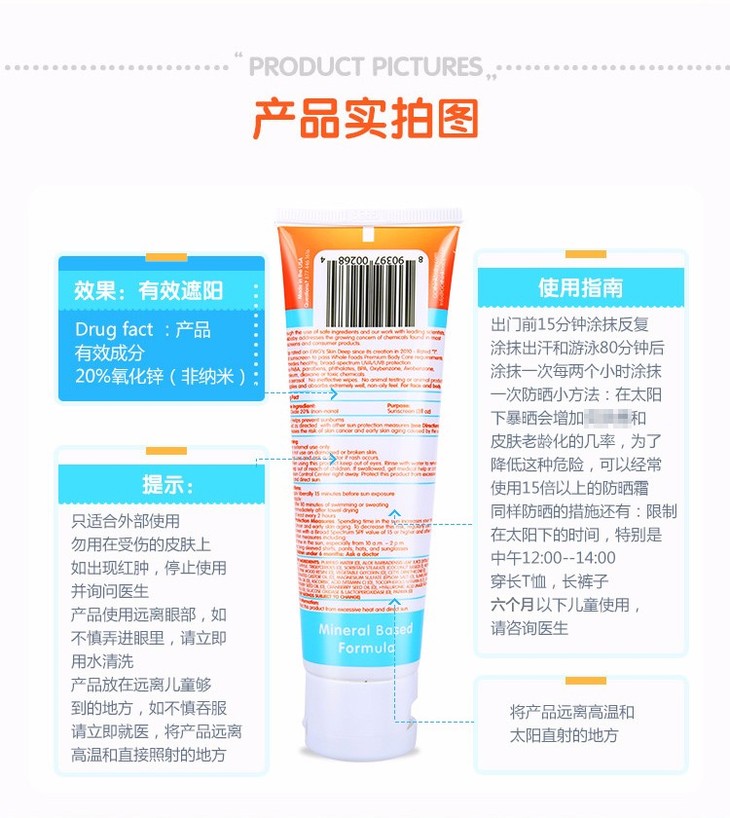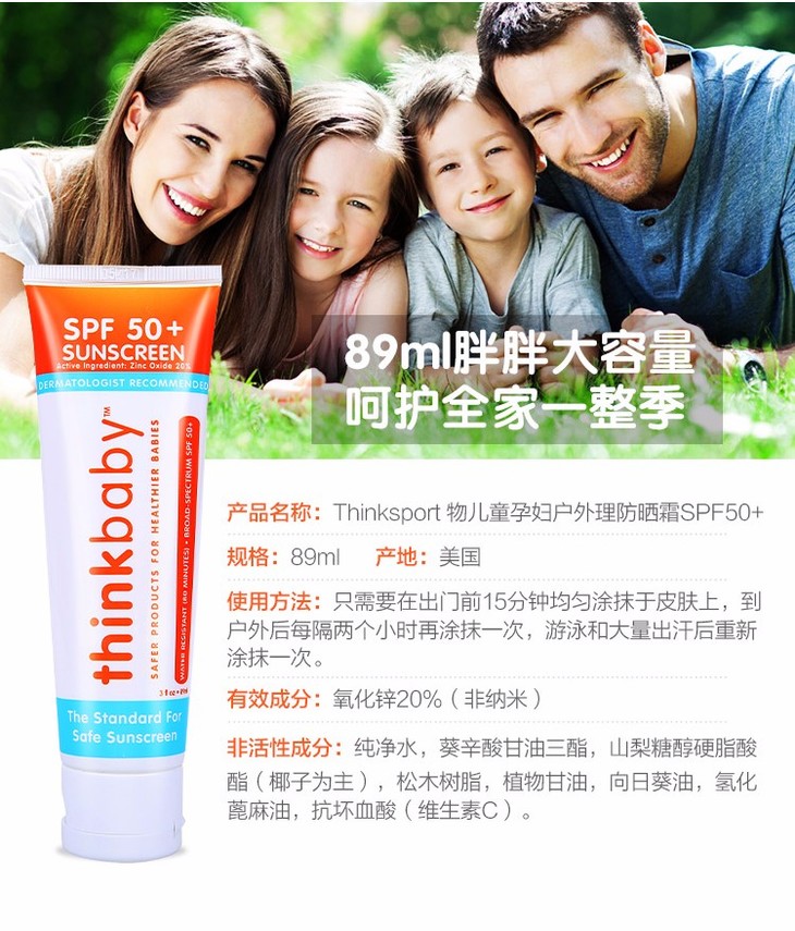 (永久下架)美国辛克宝宝 婴儿物理防晒霜 89ML(保税区发货)