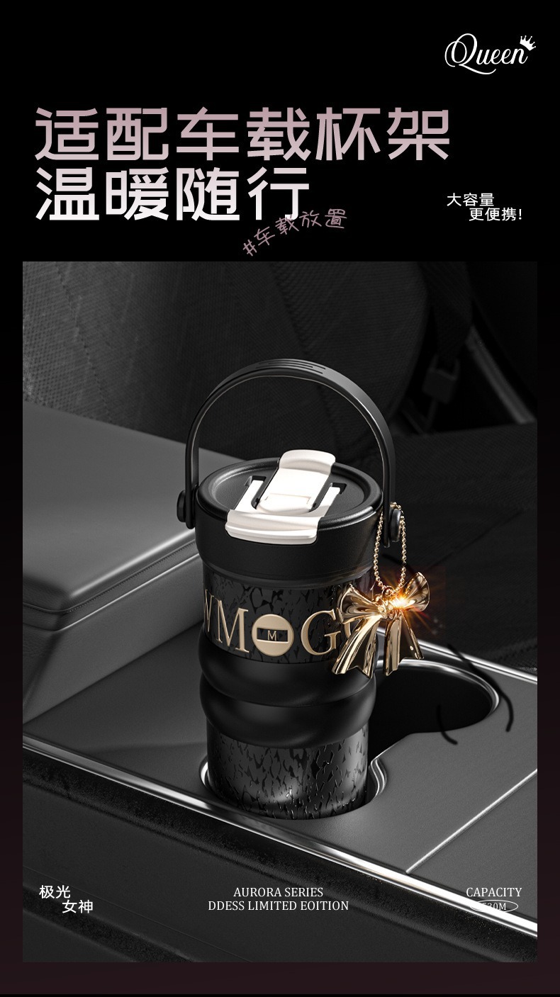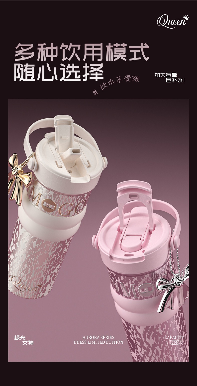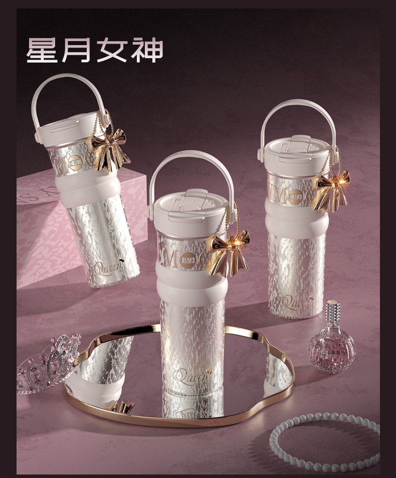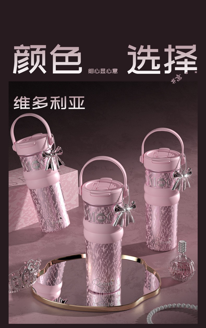 陶瓷双饮咖啡杯大容量高颜值带手提便携吸管礼品水杯