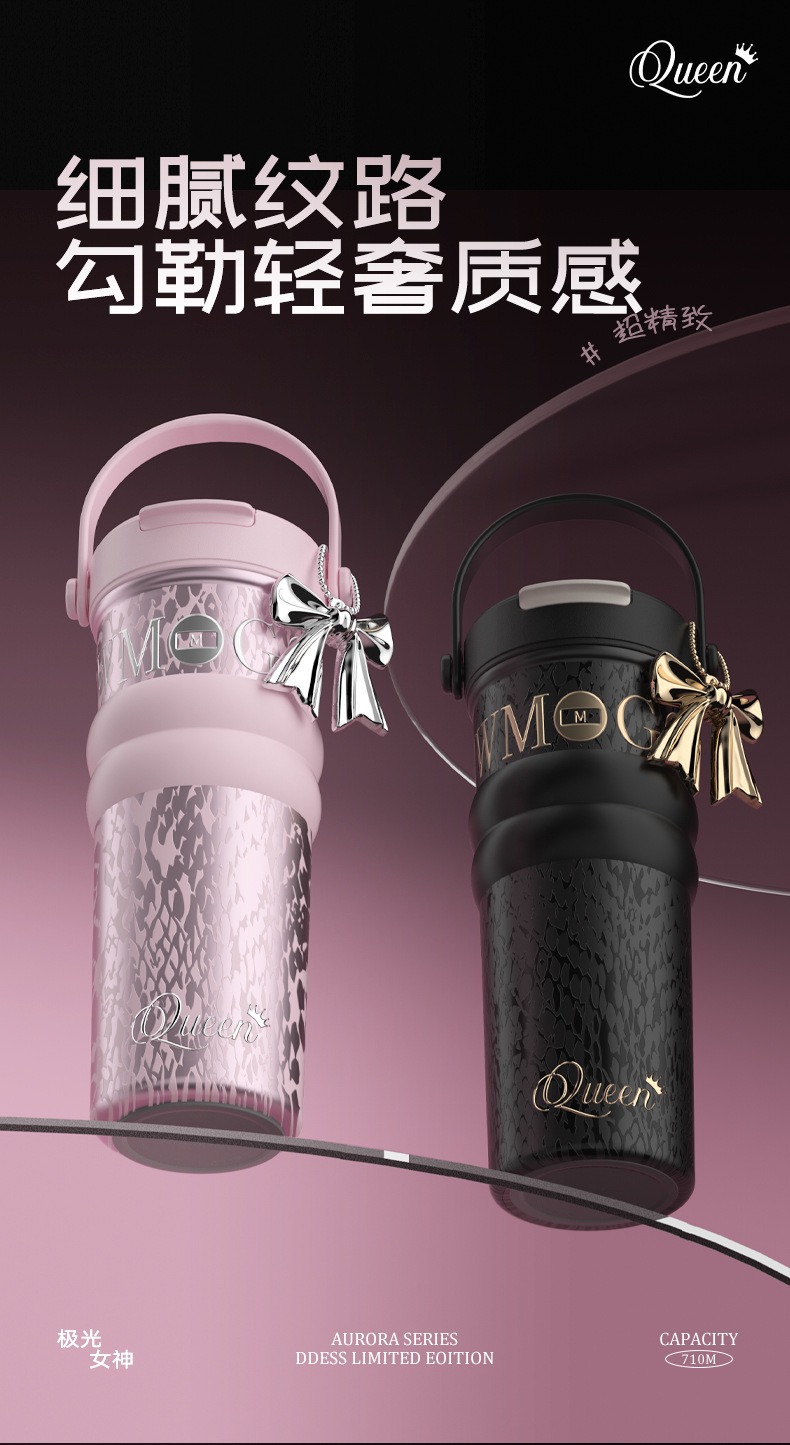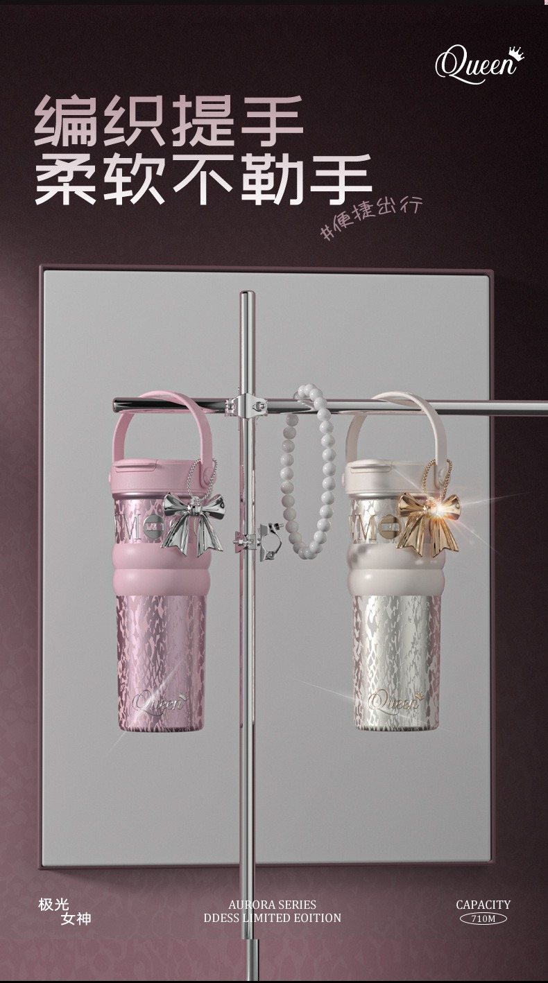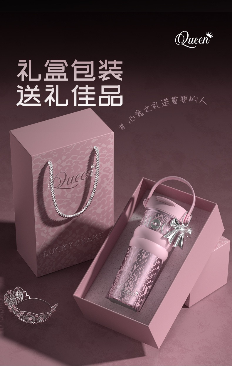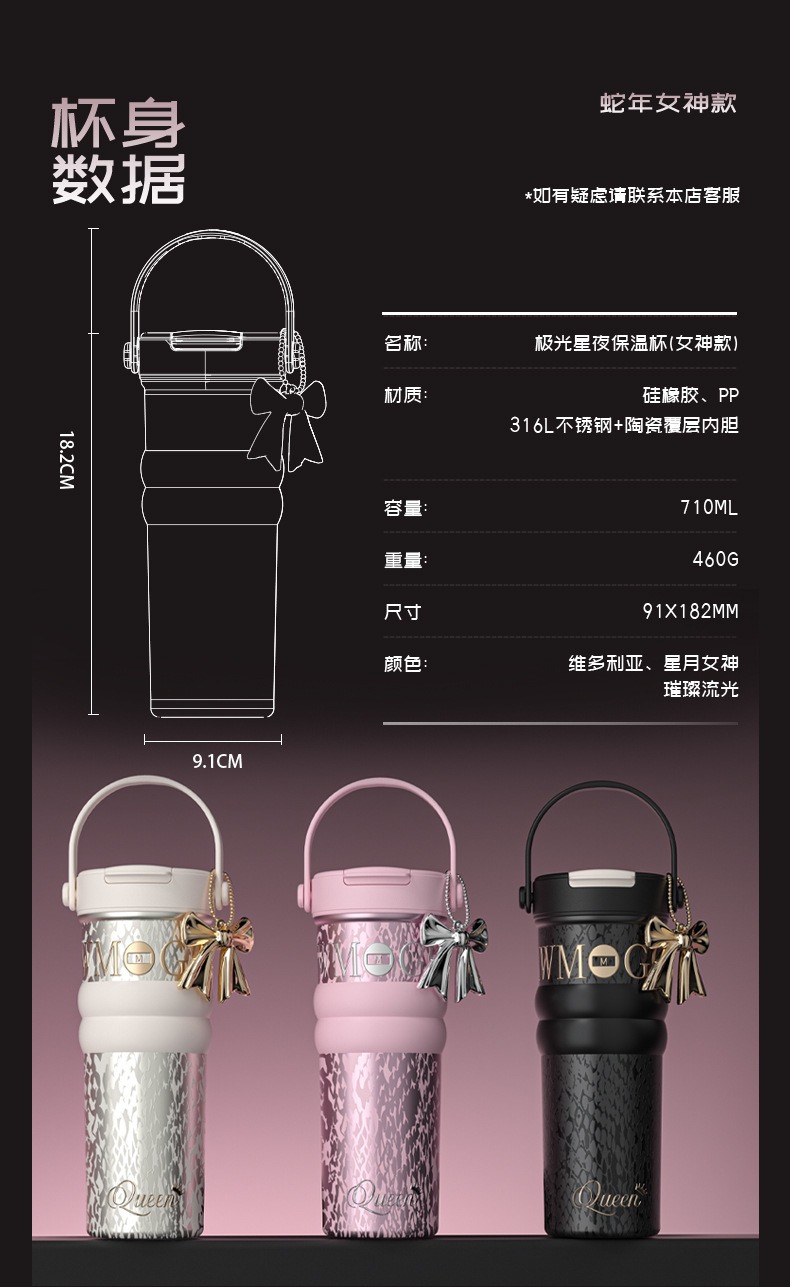 陶瓷双饮咖啡杯大容量高颜值带手提便携吸管礼品水杯
