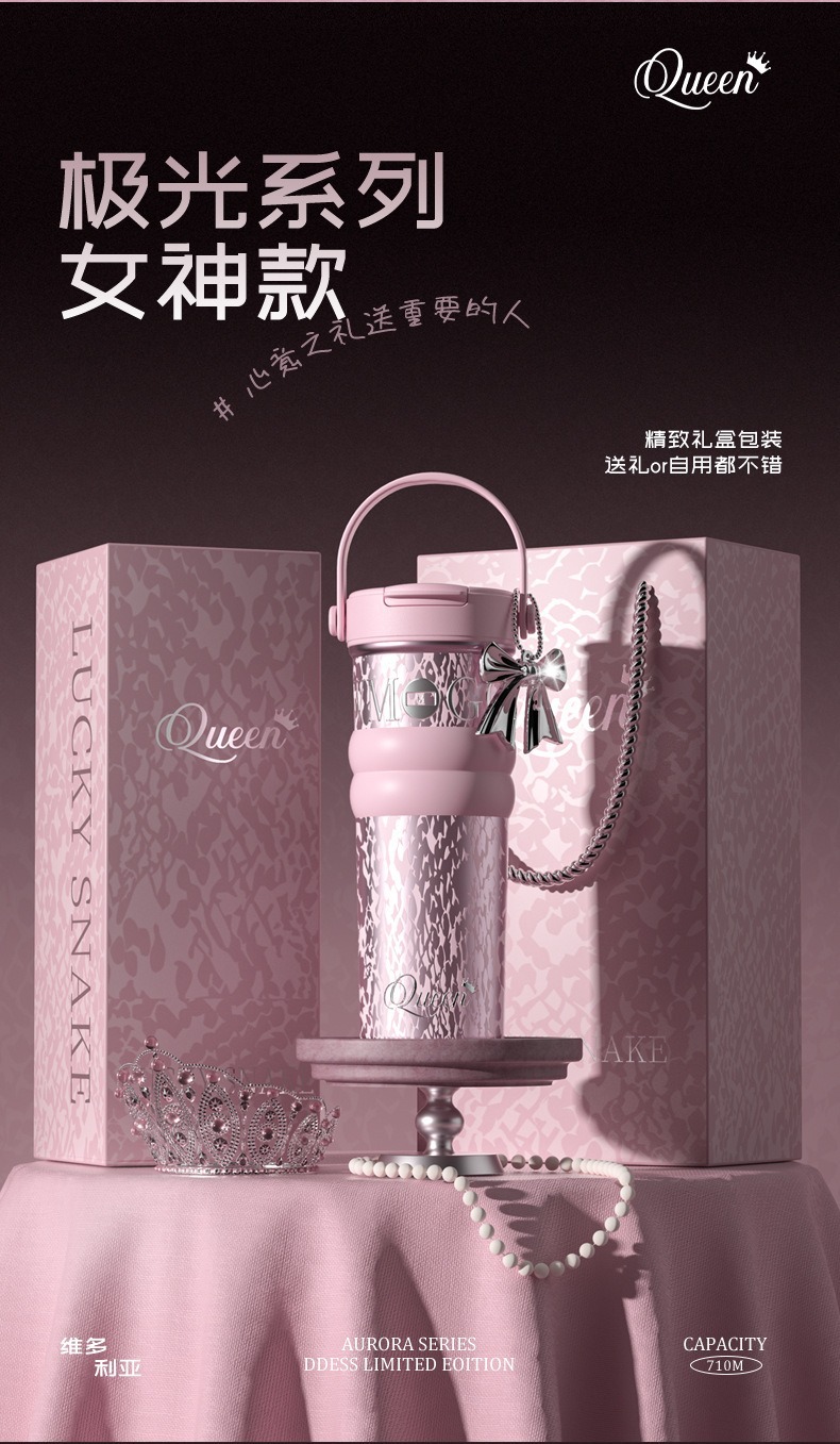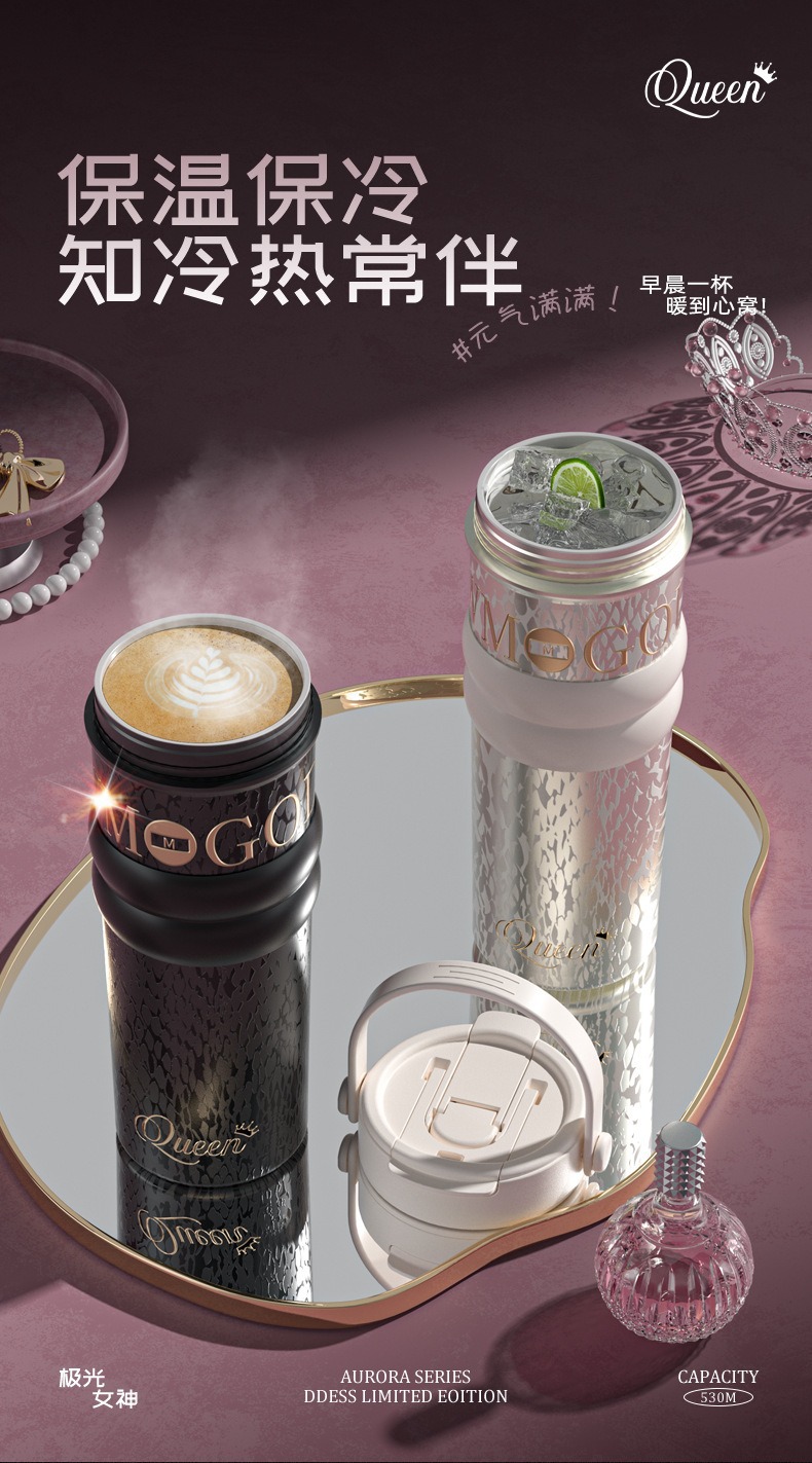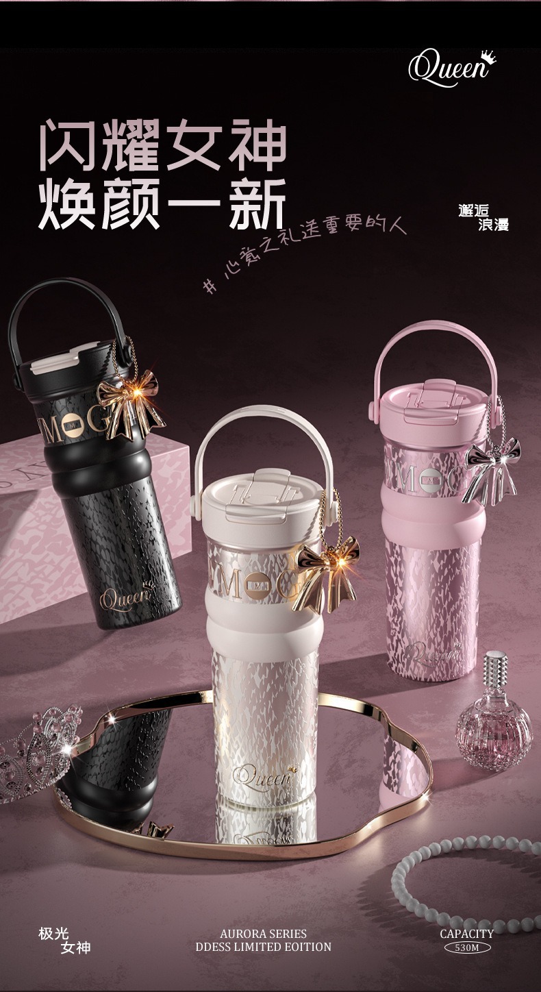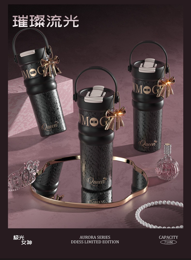 陶瓷双饮咖啡杯大容量高颜值带手提便携吸管礼品水杯
