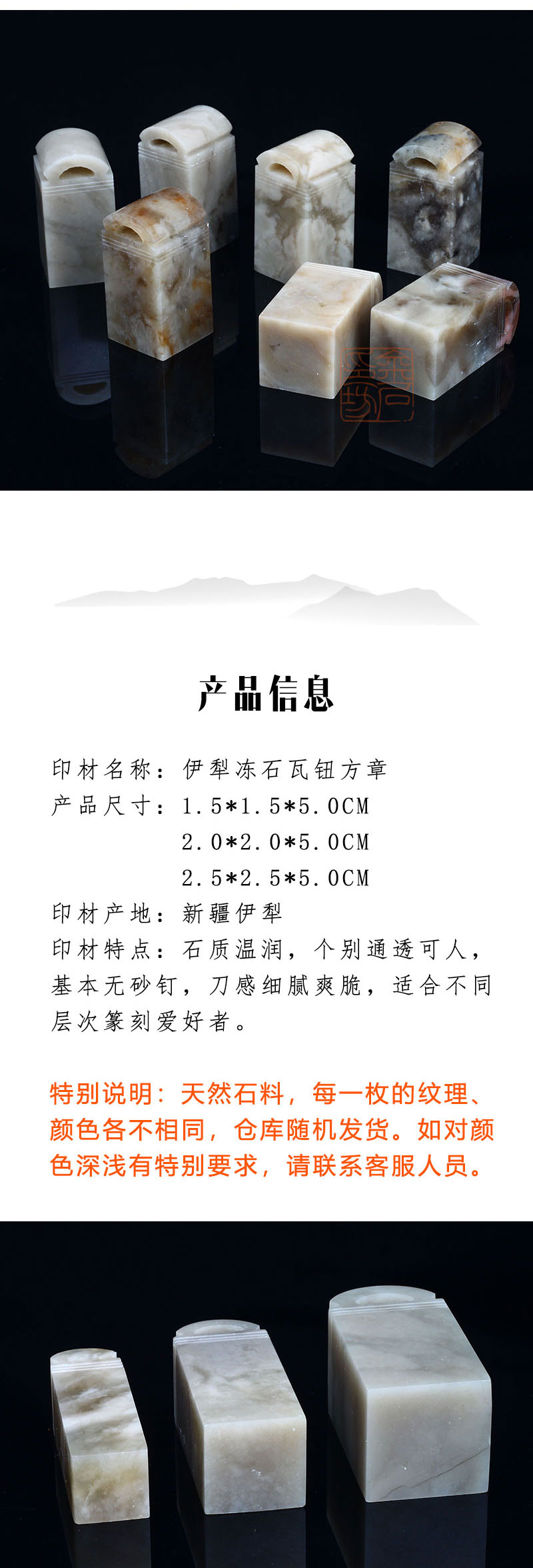 伊犁冻石瓦钮方章 5000目磨光赠锦盒 新疆软玉印石篆刻章料 金石印坊监制