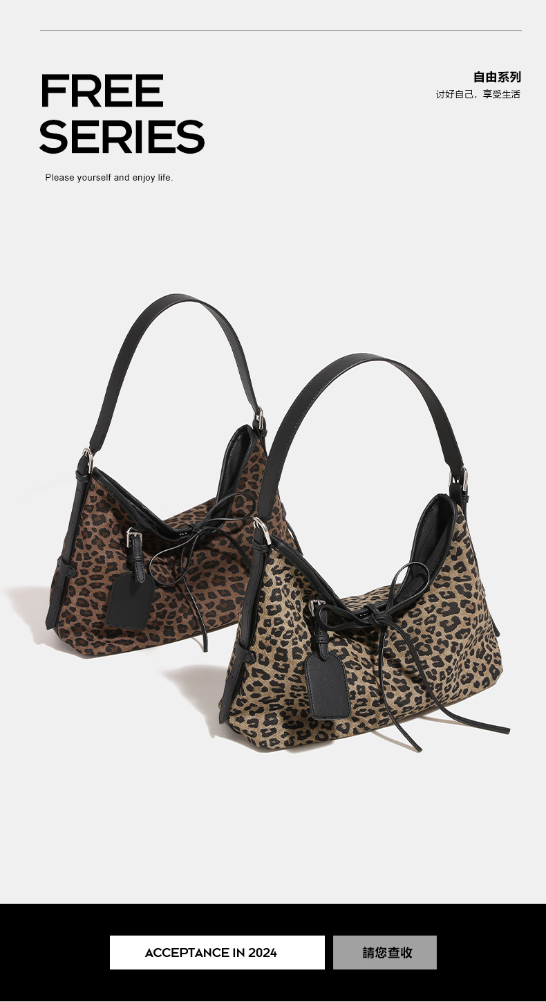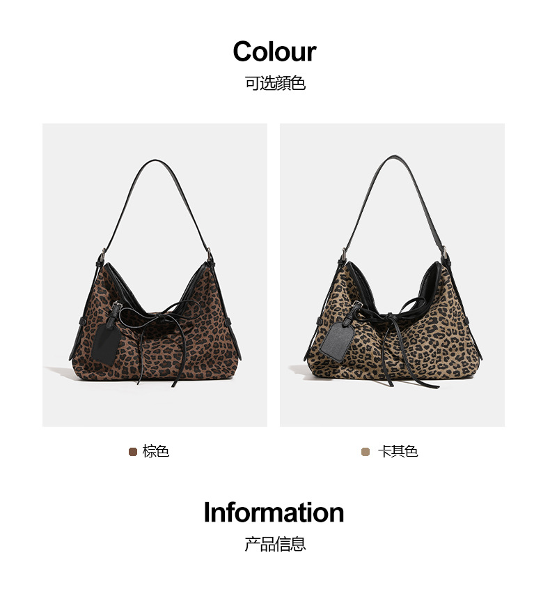 【预售3天】2025新款复古豹纹慵懒风单肩斜挎包大容量通勤时尚百搭托特包YJ5427