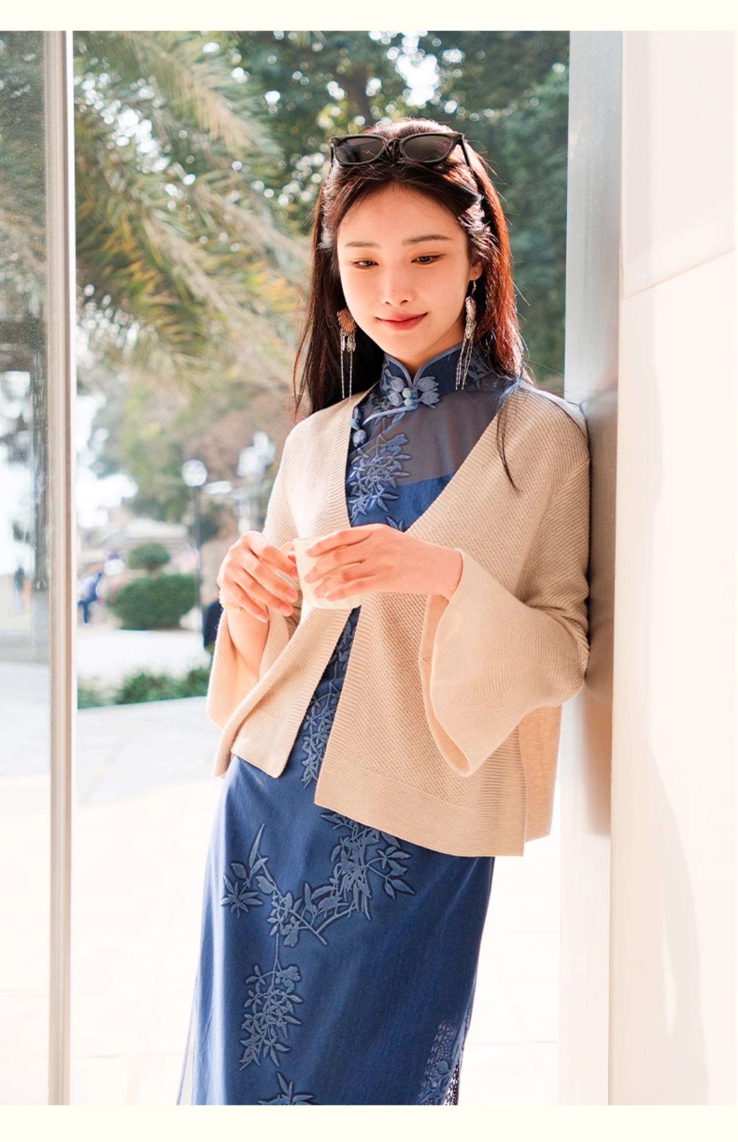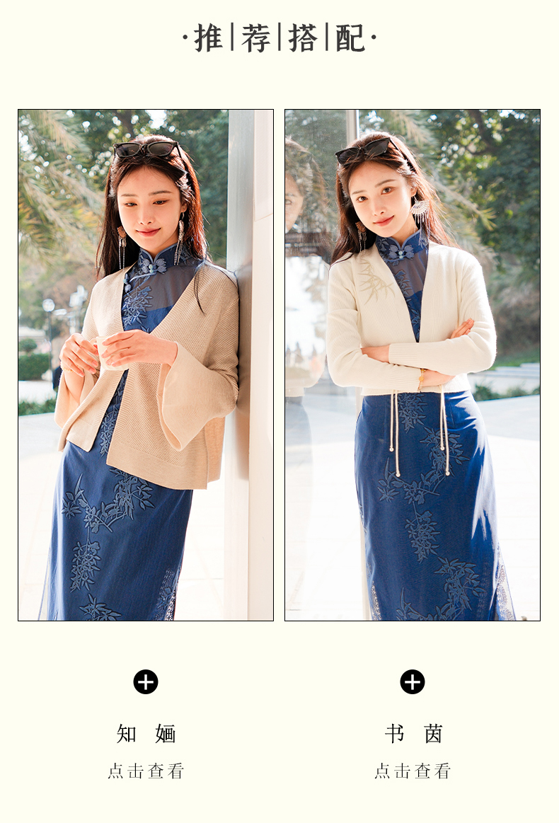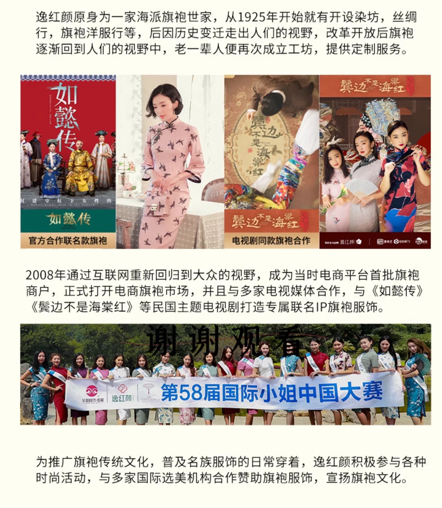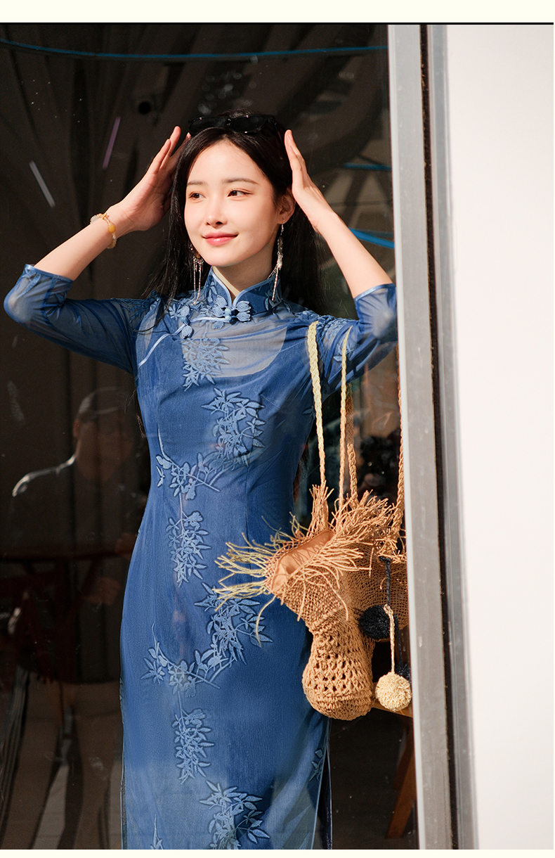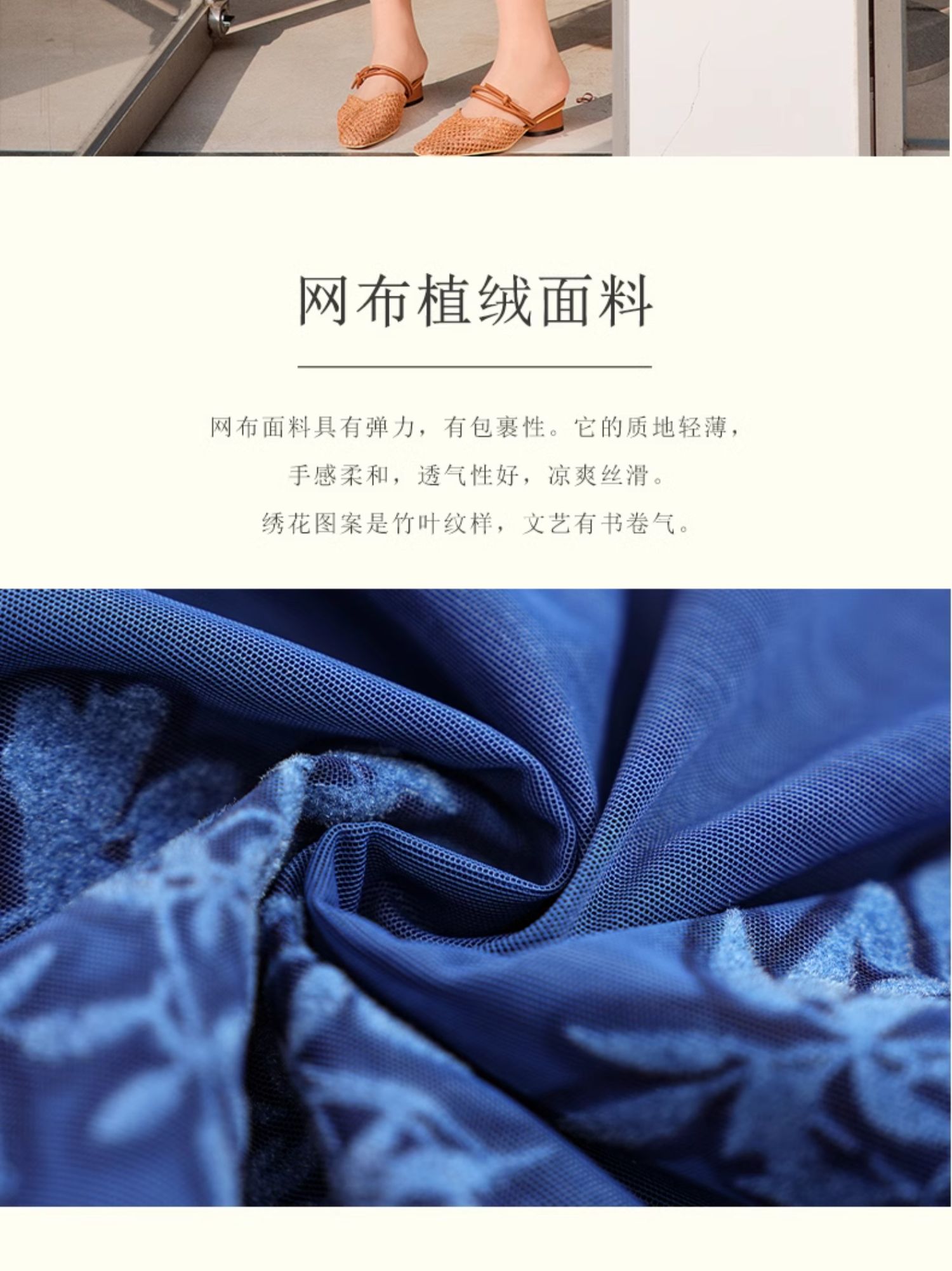 上海逸红颜轩竹2025春新微弹松弛感网布植绒文艺中式七分袖旗袍女