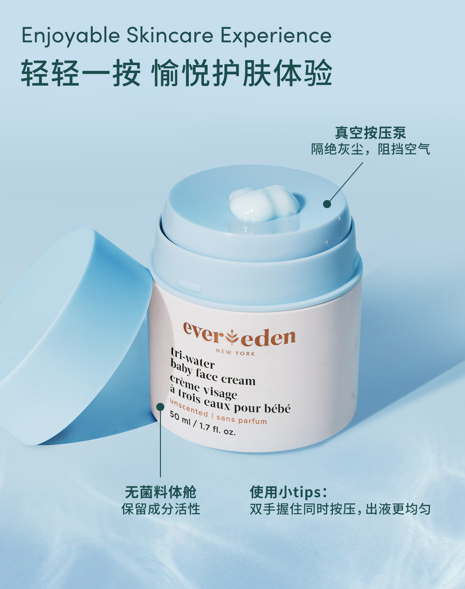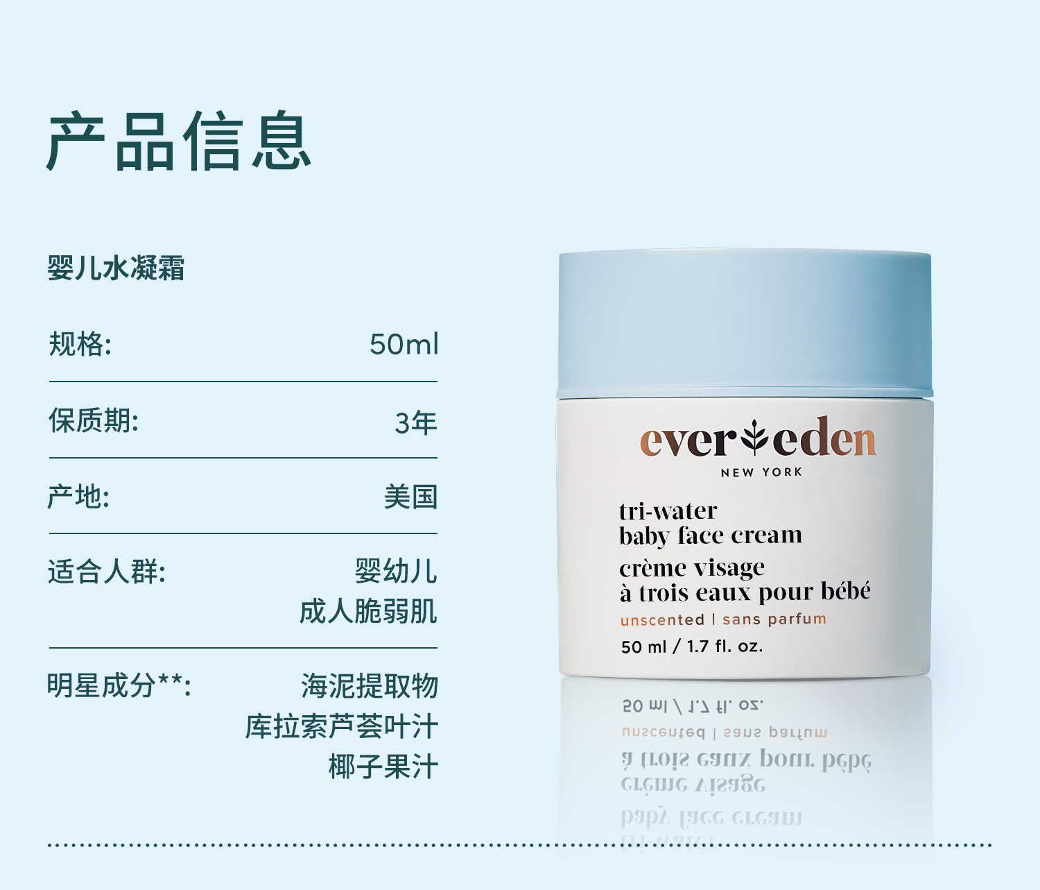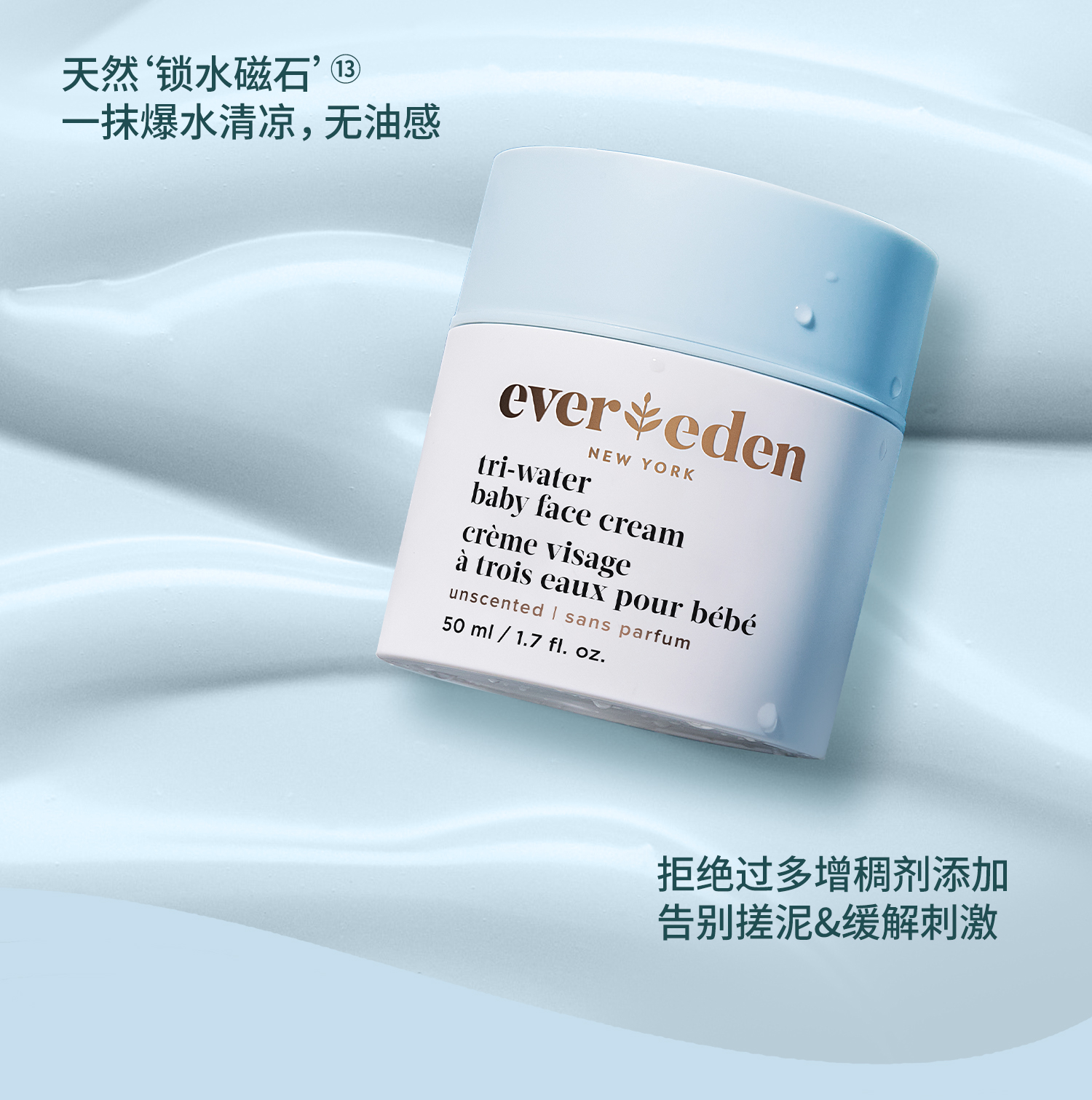 【春上新】9楼母婴生活馆 Evereden安唯伊婴儿夏季小蓝冻水凝面霜老爸抽检宝宝保湿面霜50mL 活动价:259元