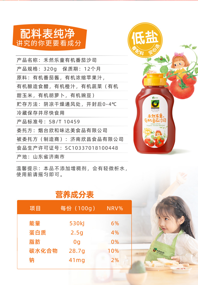 【下单即赠有机宝宝面条】有机番茄沙司320g