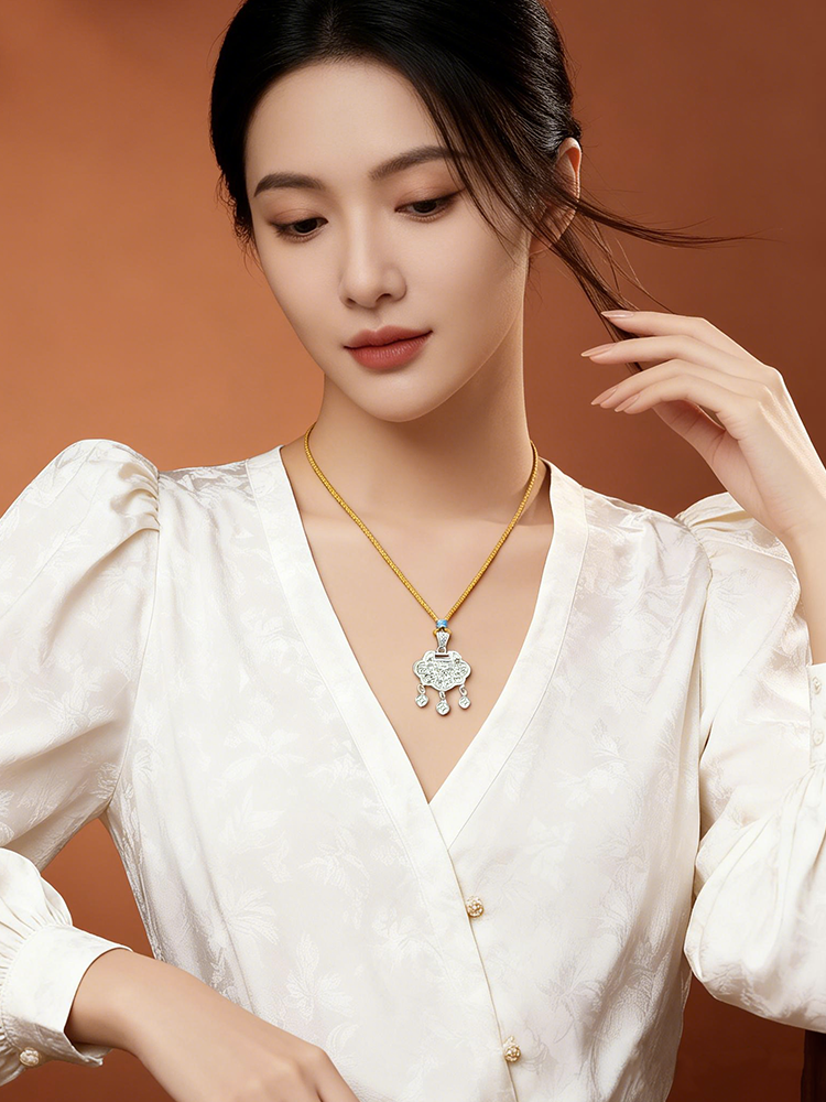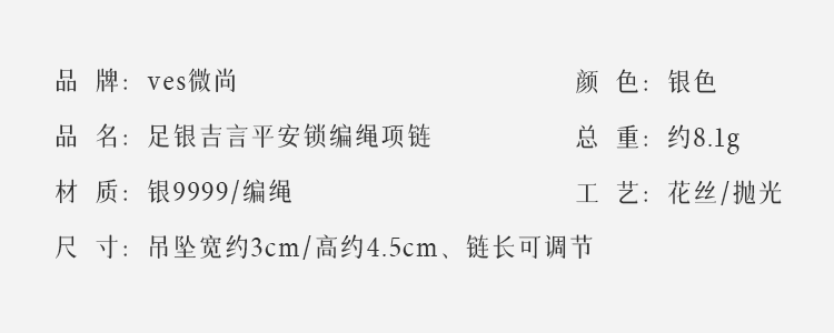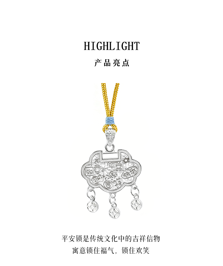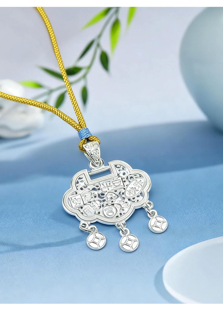 足银吉言平安锁编绳项链