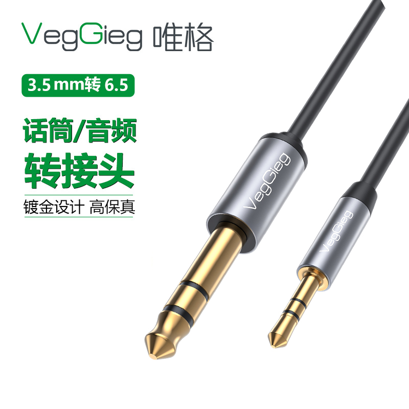 严选【镀金耳机话筒转接头】3.5mm公转6.35mm公1.8M音频插头公转接头1个
