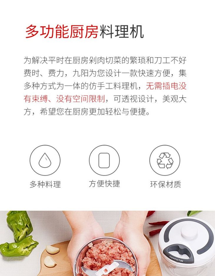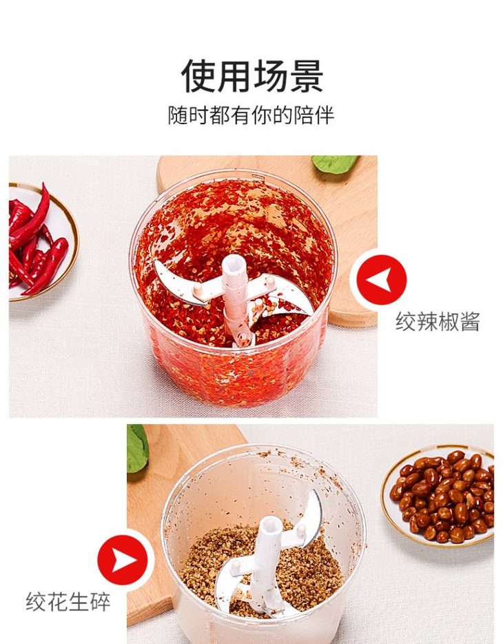 手拉式,15秒旋风绞碎,绞肉碎菜,材质安全,操作方便,易洁易洗~