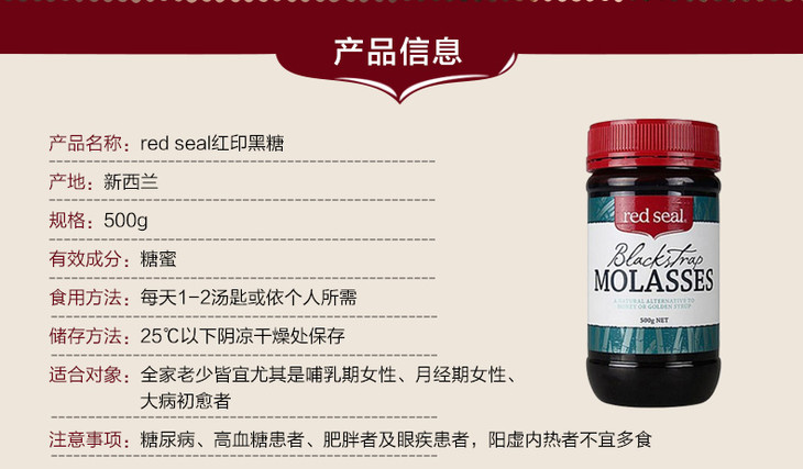 (永久下架)新西兰Red Seal红印牌 黑糖 500g