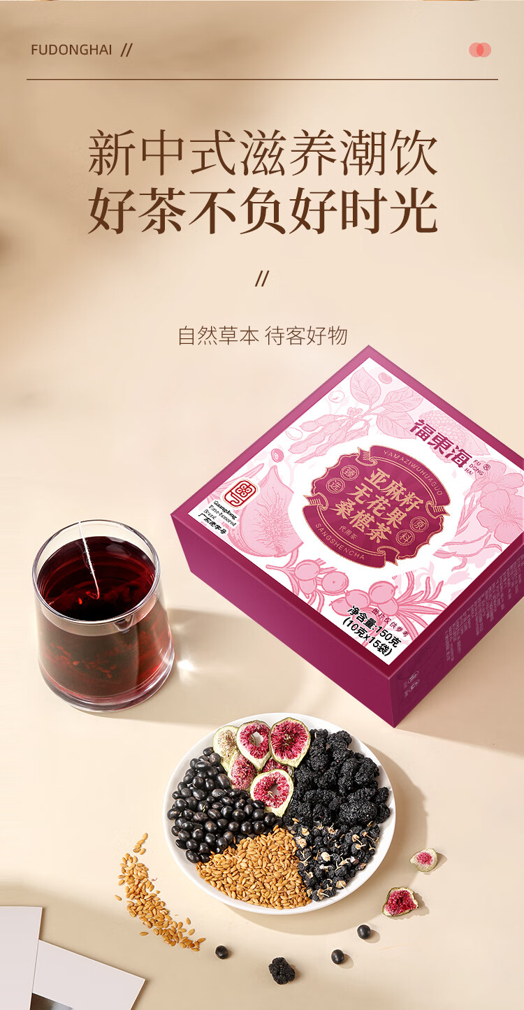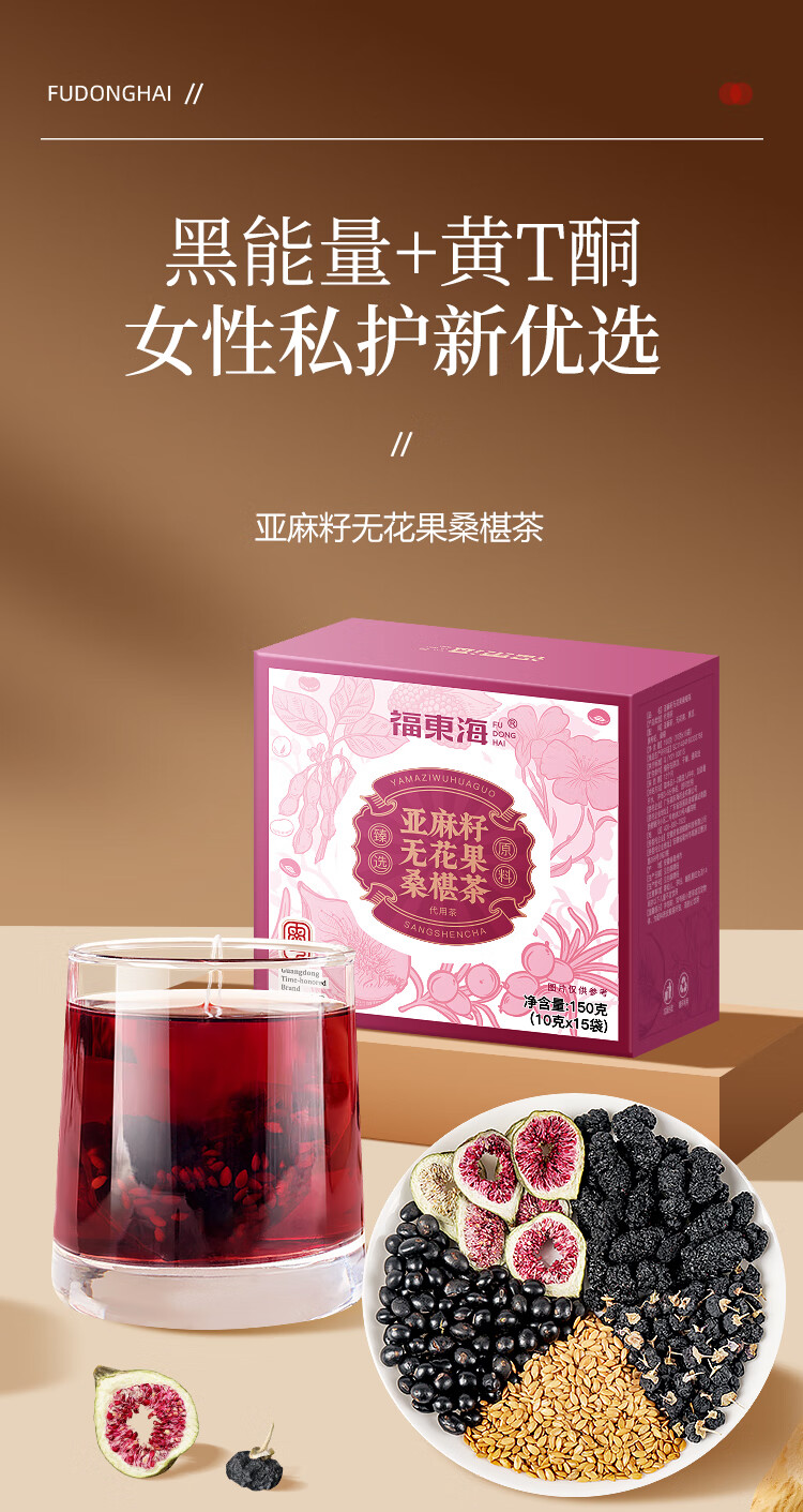 福东海 亚麻籽无花果桑椹茶150g 循环茶黑枸杞降雄养雌茶黄T酮