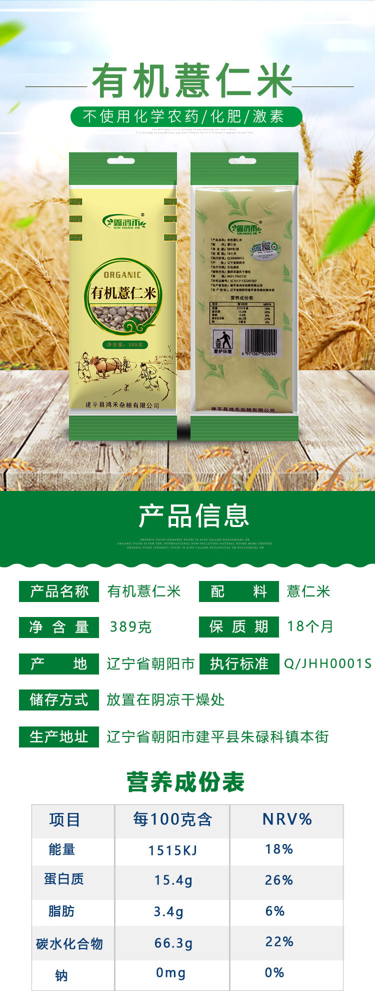 彩虹雨 有机杂粮 有机薏仁米389g 满百包邮