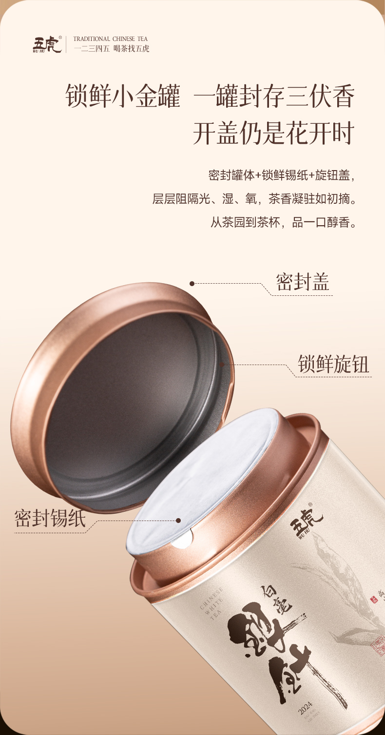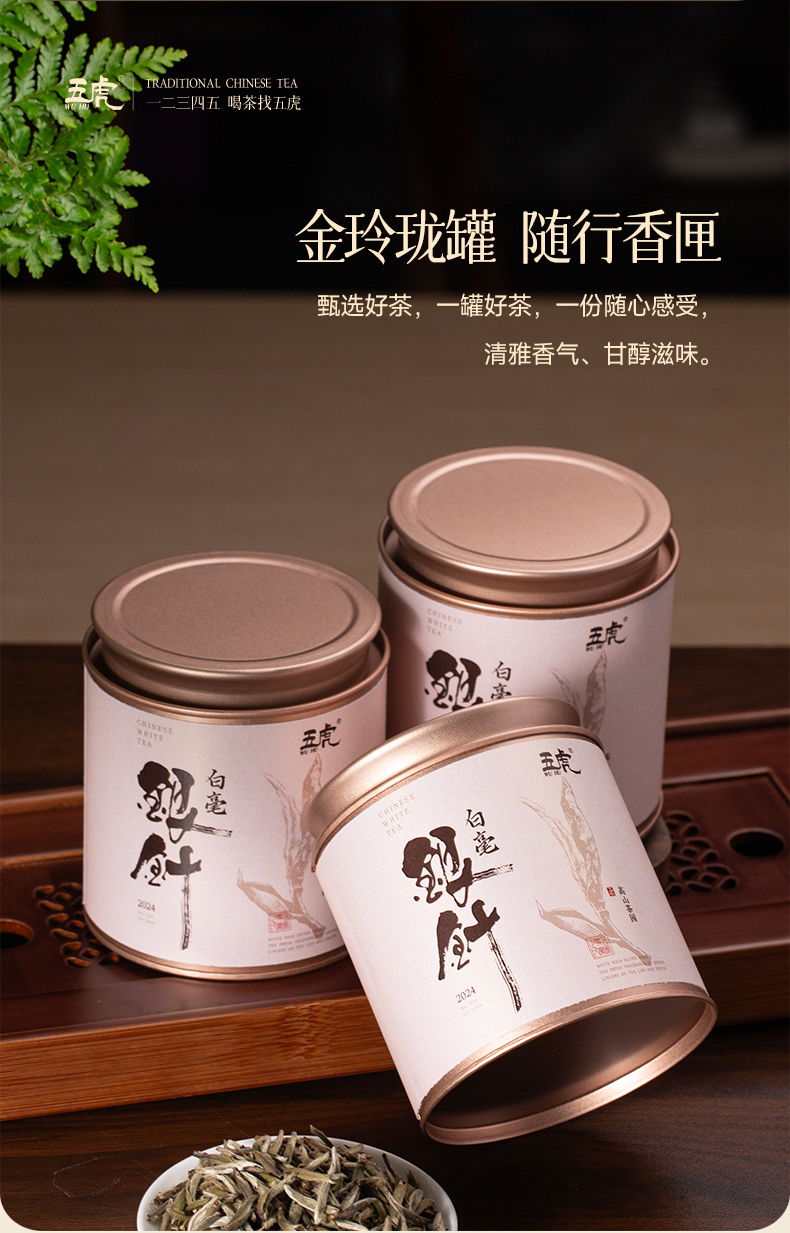 茶叶 白毫银针 福鼎白茶 小金罐 茶饮 五虎 70g