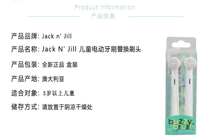 (永久下架)澳洲Jack N" Jill 3岁儿童宝宝音乐电动牙刷替换头两支装