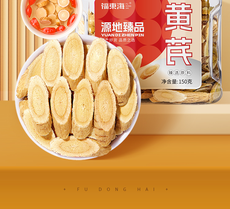 福东海 黄芪150克【实体品质】新货甘肃生北芪党参当归煲汤煮水泡茶
