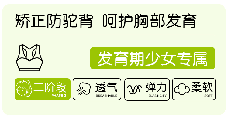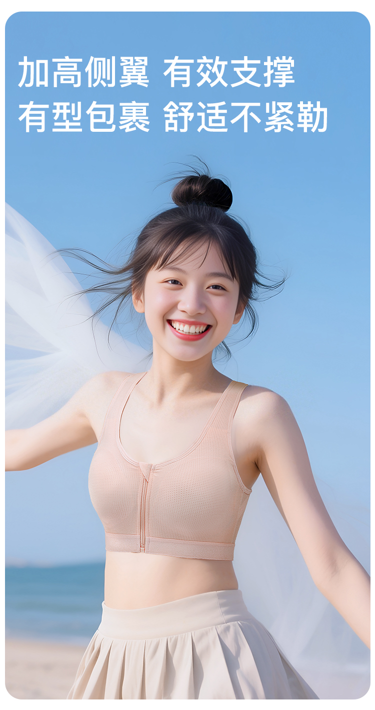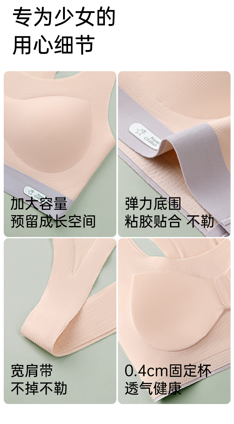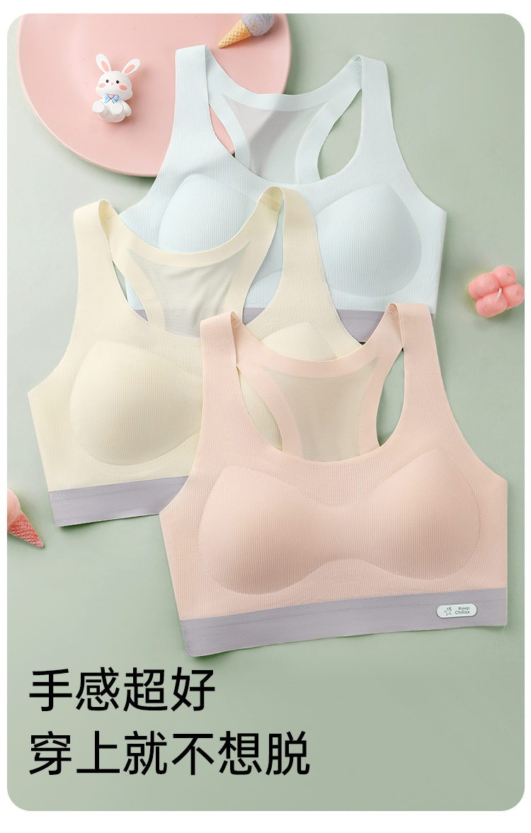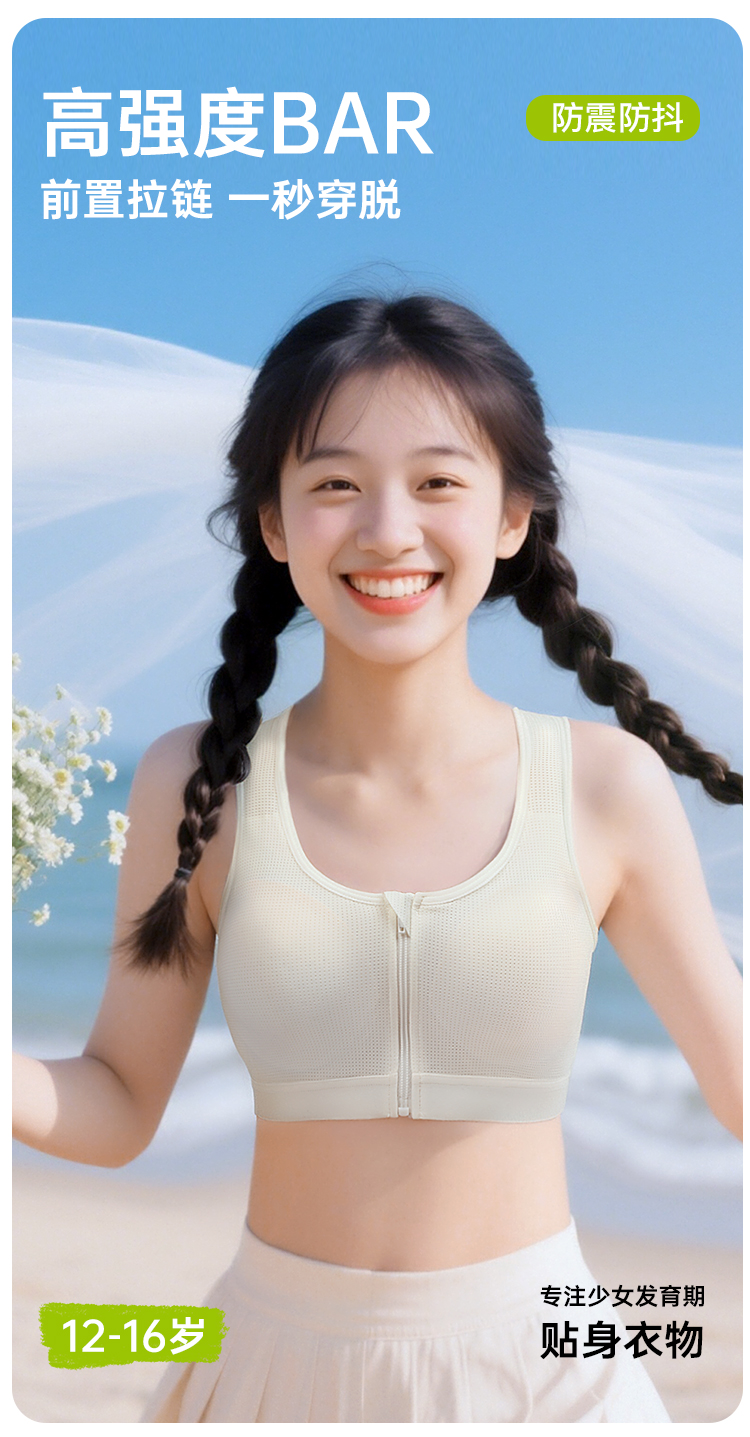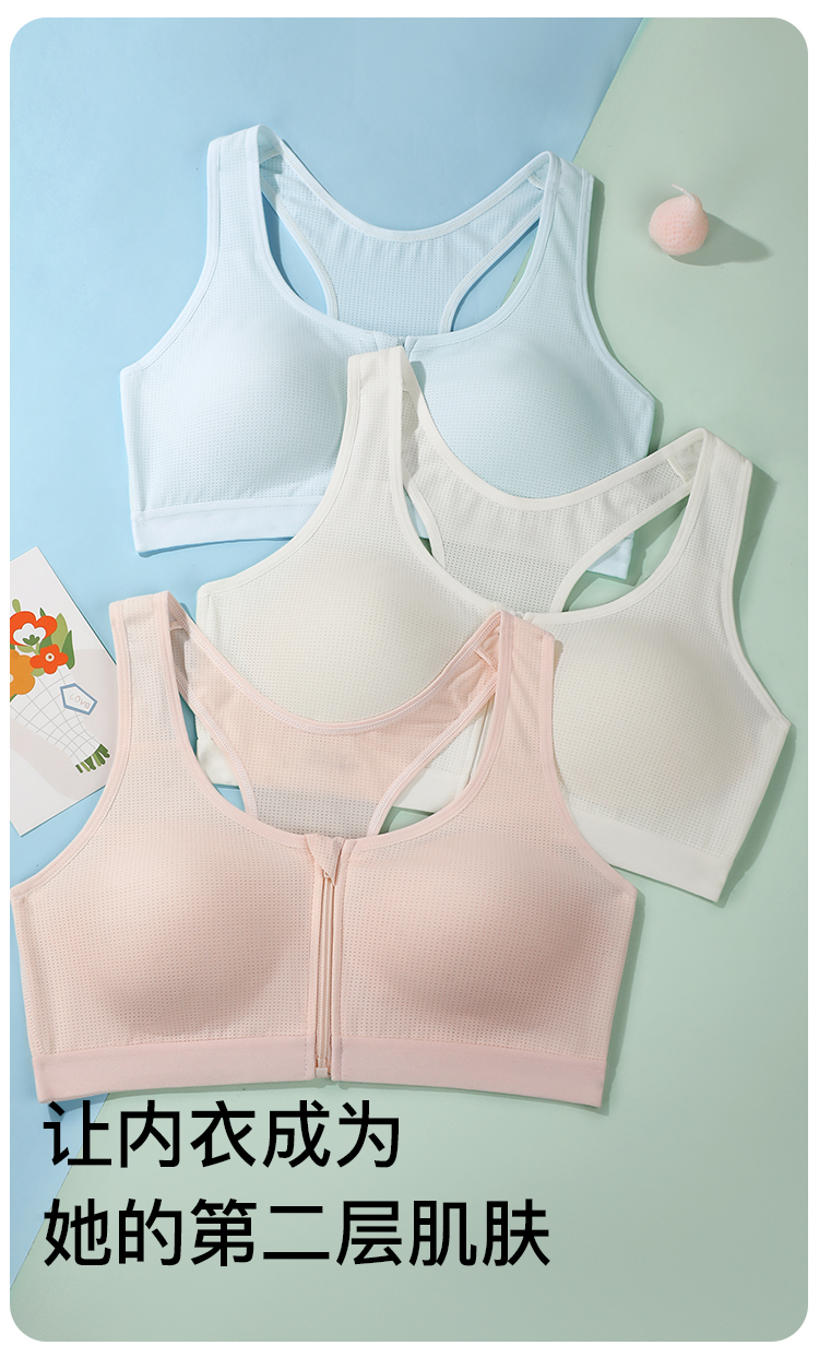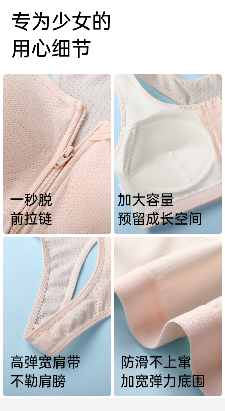 A5-【前置拉链一秒穿脱】【12-16岁二阶段】润微70-140斤少女发育期文胸背心运动防震儿童内衣 星糖玥玥/柔风律动【青春系列】