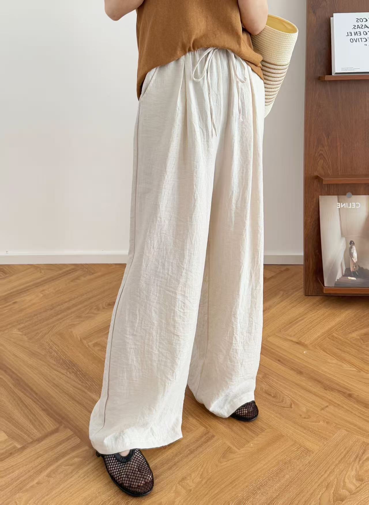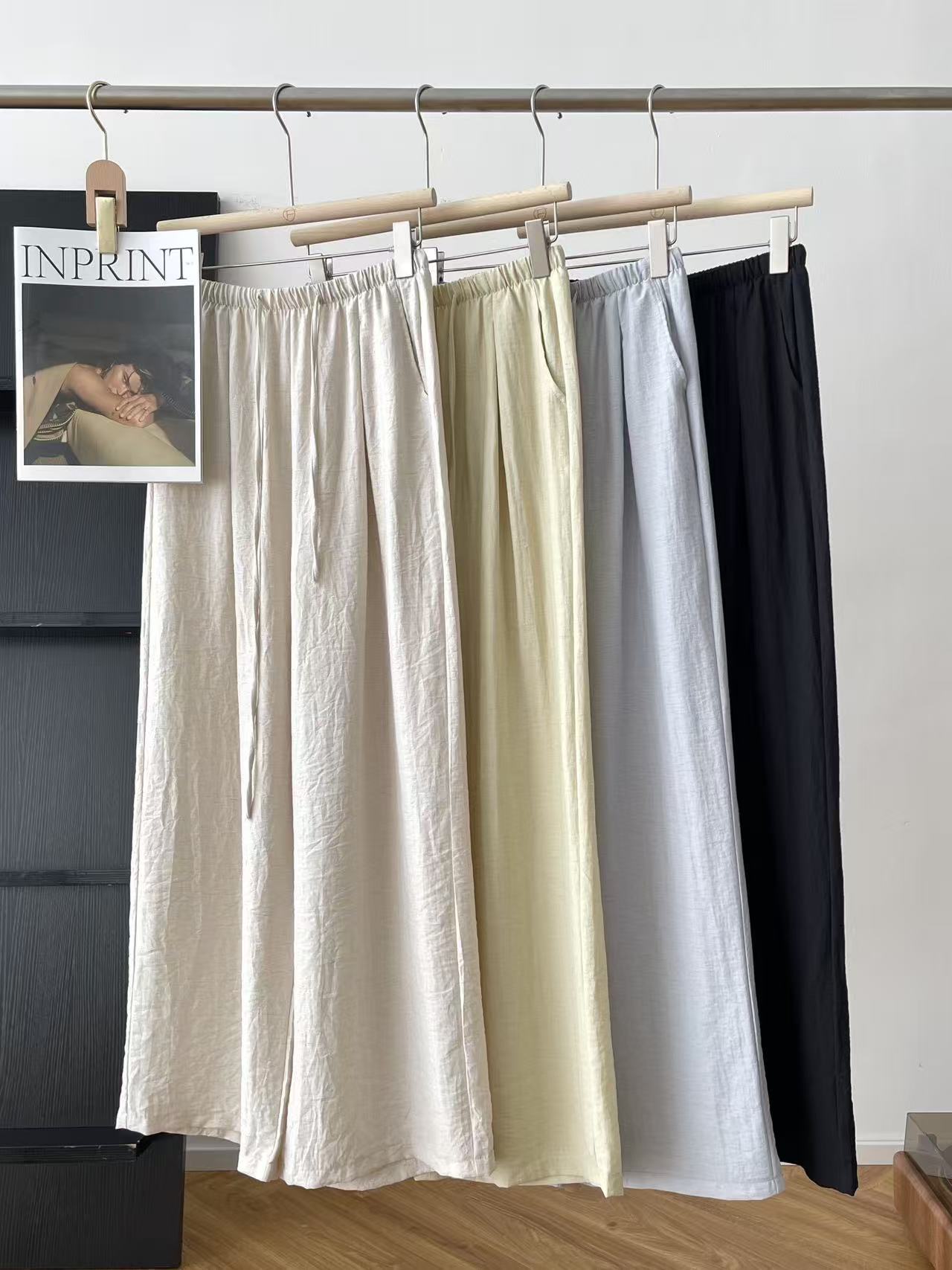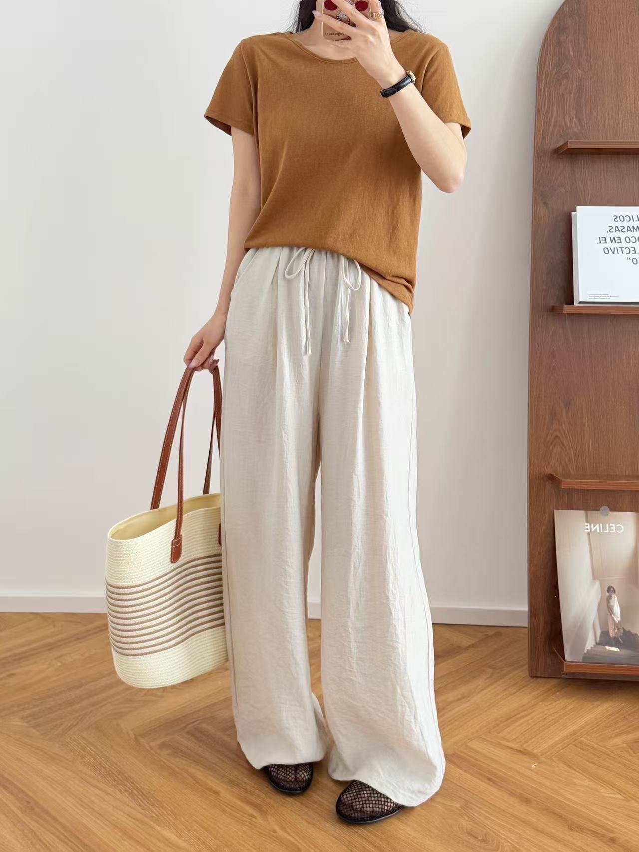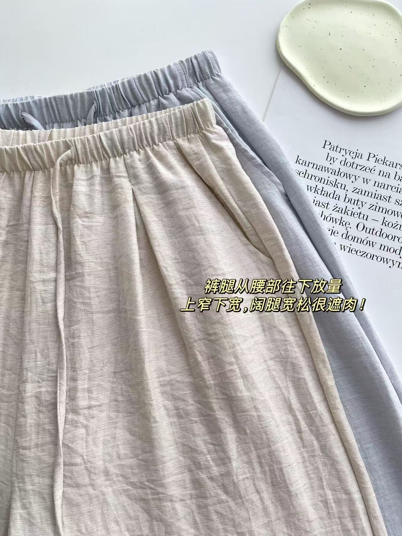 【老钱风亚麻阔腿裤】精选高支亚麻 拖地长度+流畅A型廓形,遮肉又显瘦