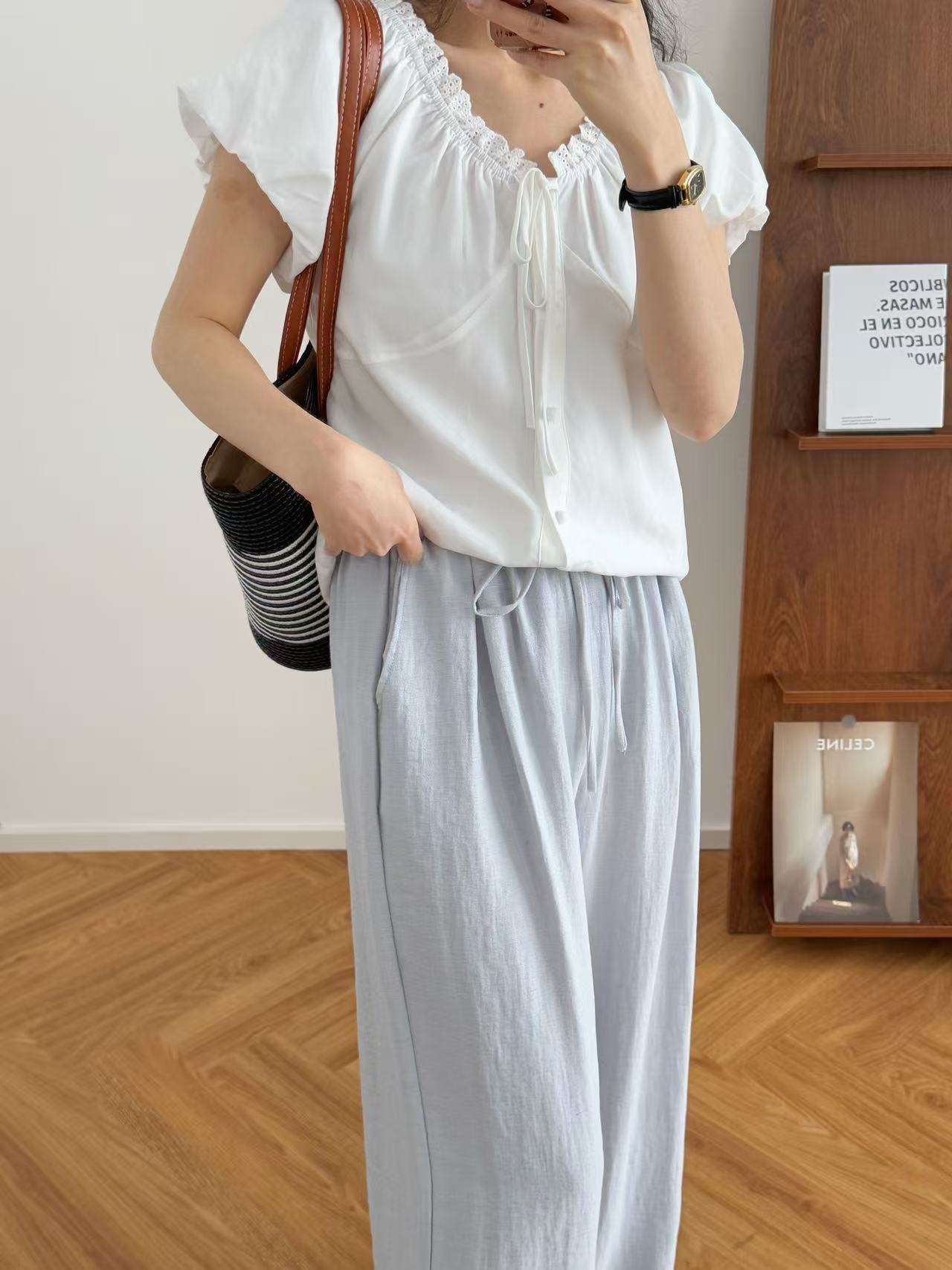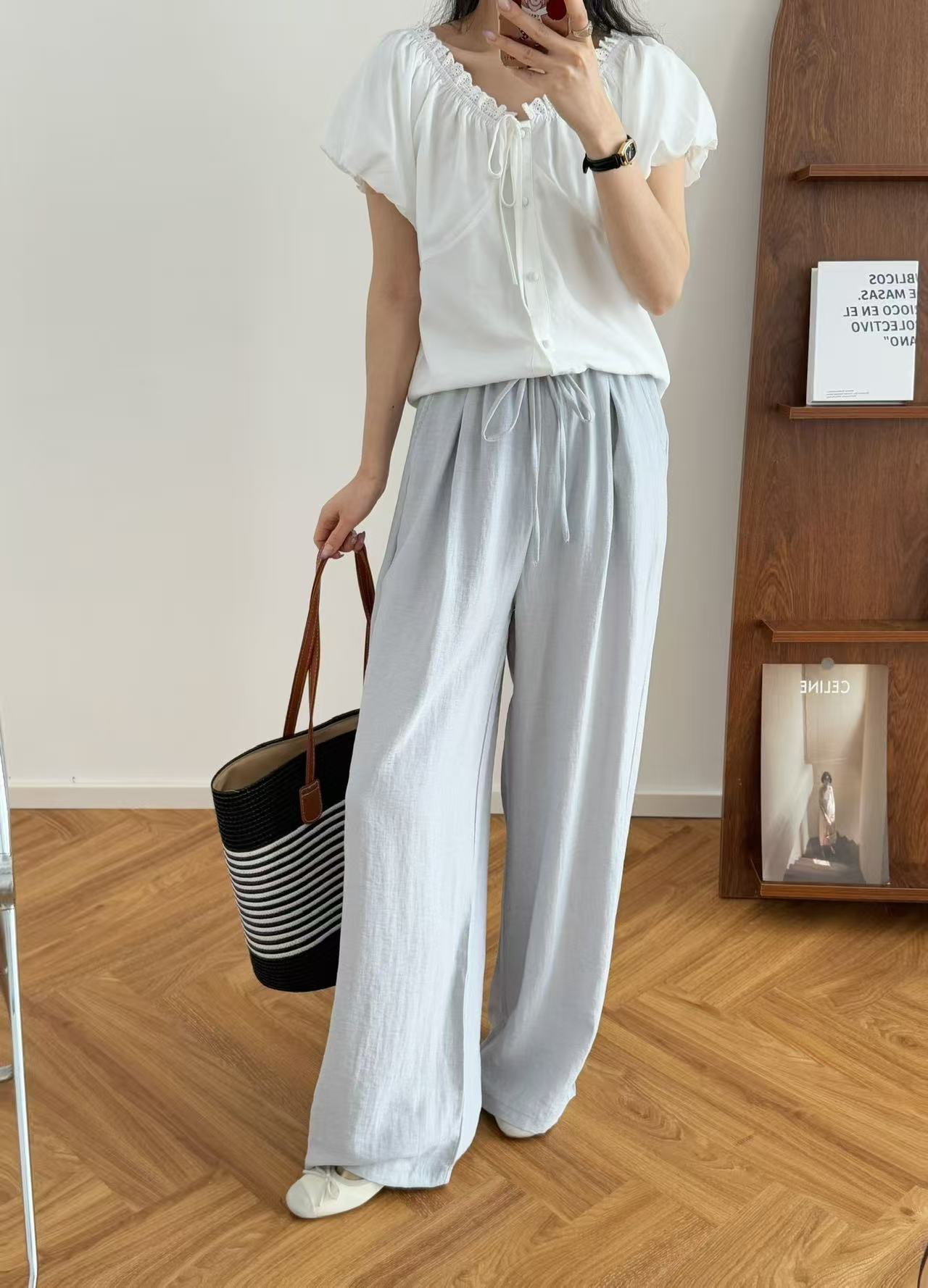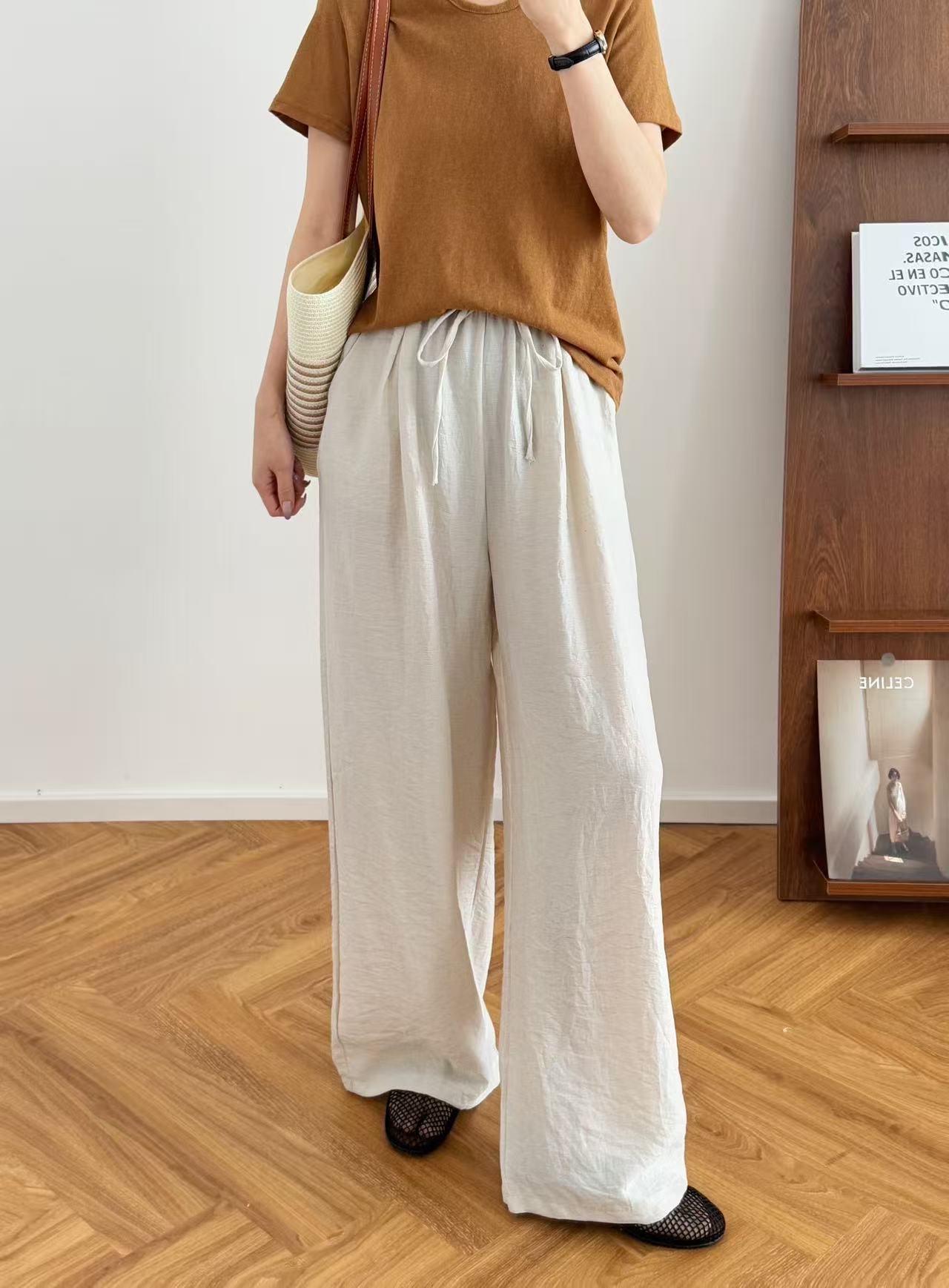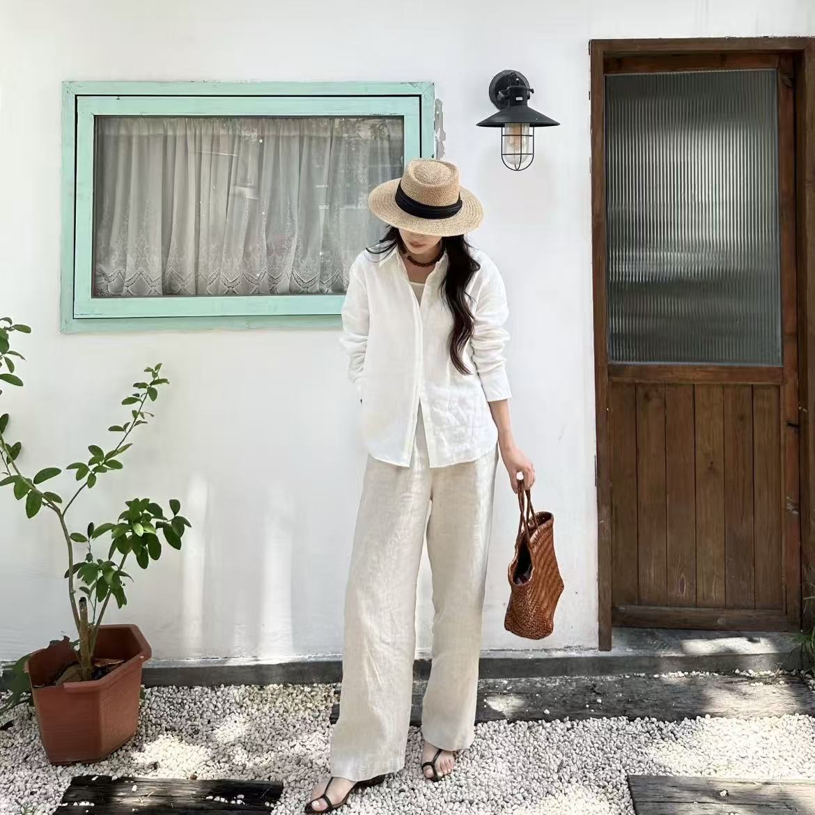 【老钱风亚麻阔腿裤】精选高支亚麻 拖地长度+流畅A型廓形,遮肉又显瘦