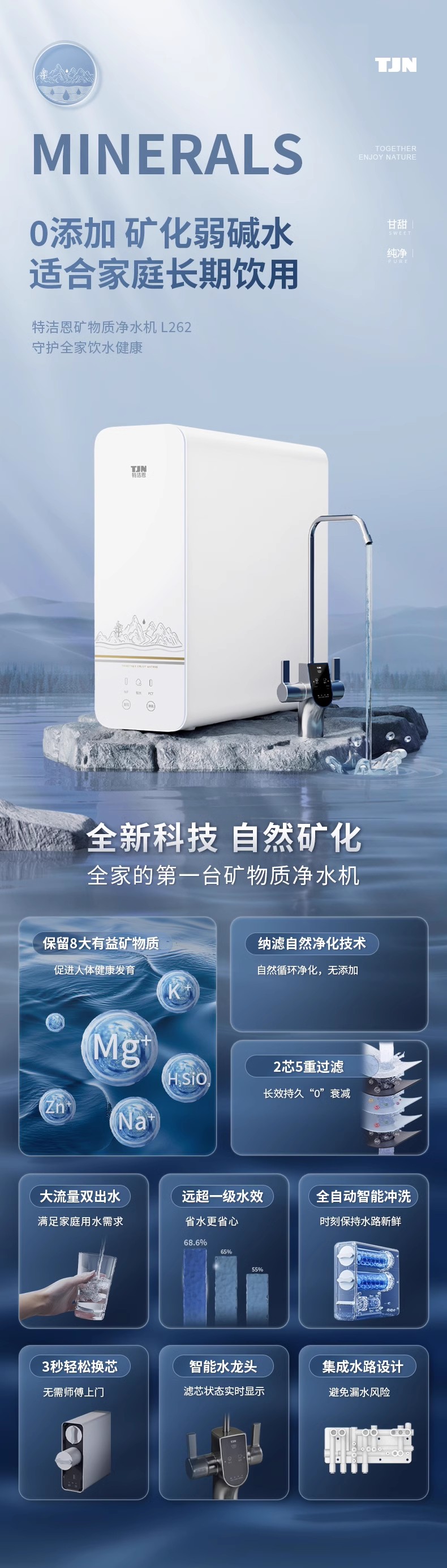 德国TJN特洁恩矿泉水净水机厨房矿物质纳滤净水器直饮家用