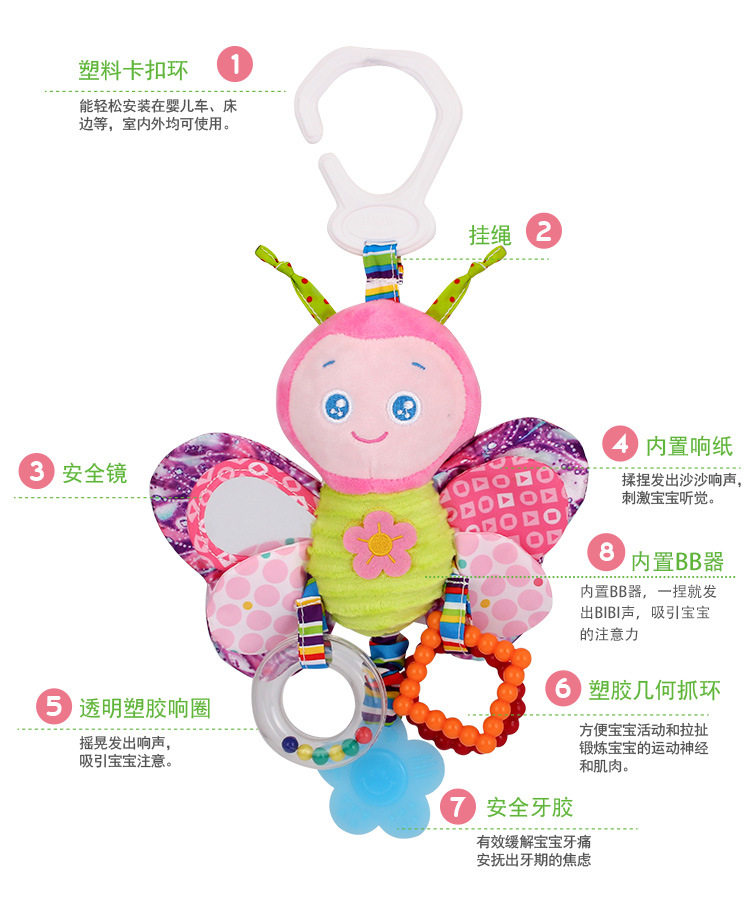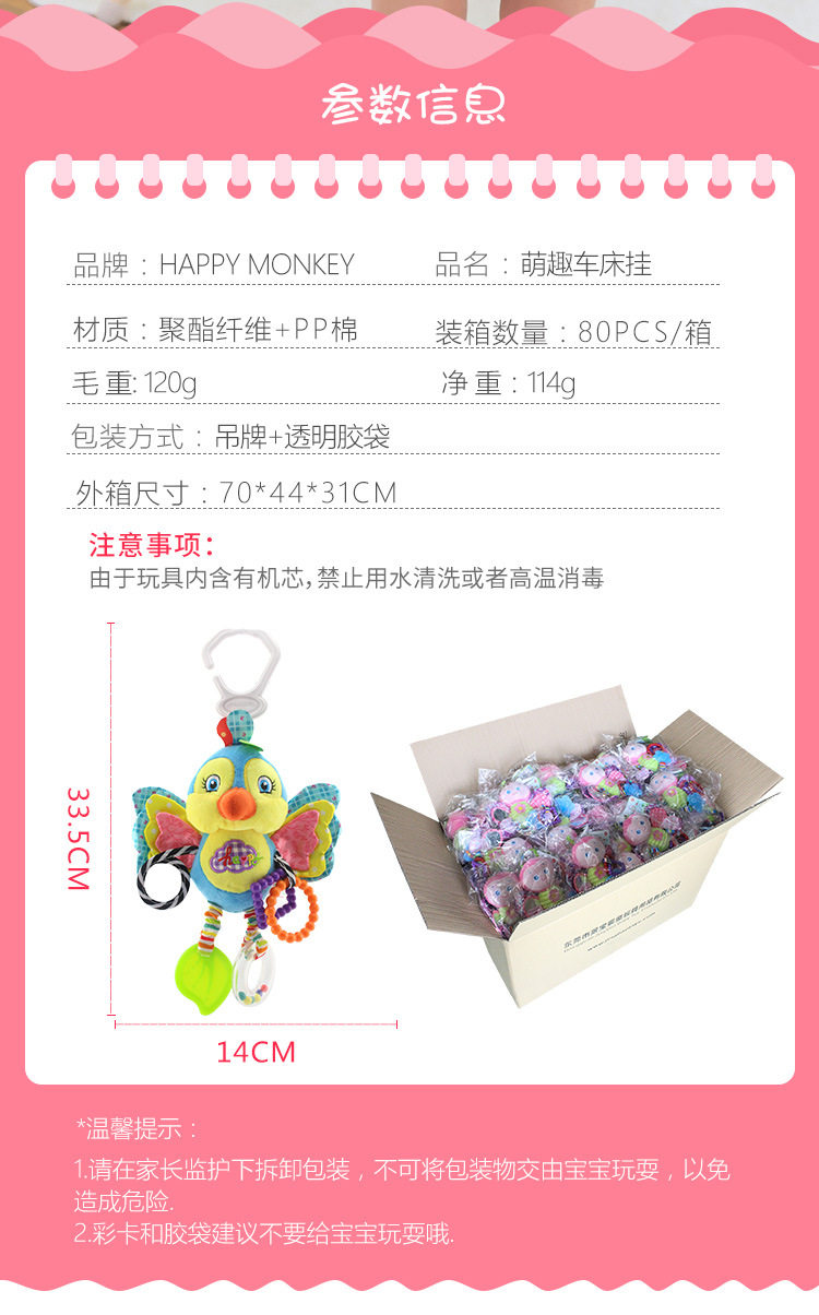 Happy monkey宝宝摇铃挂件卡通动物婴儿安抚玩偶带牙胶响纸 厂家