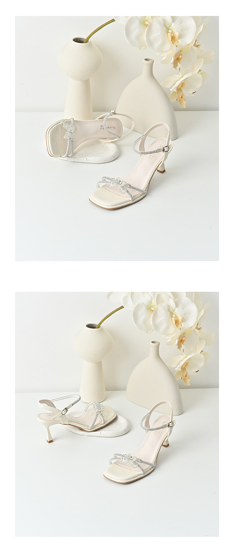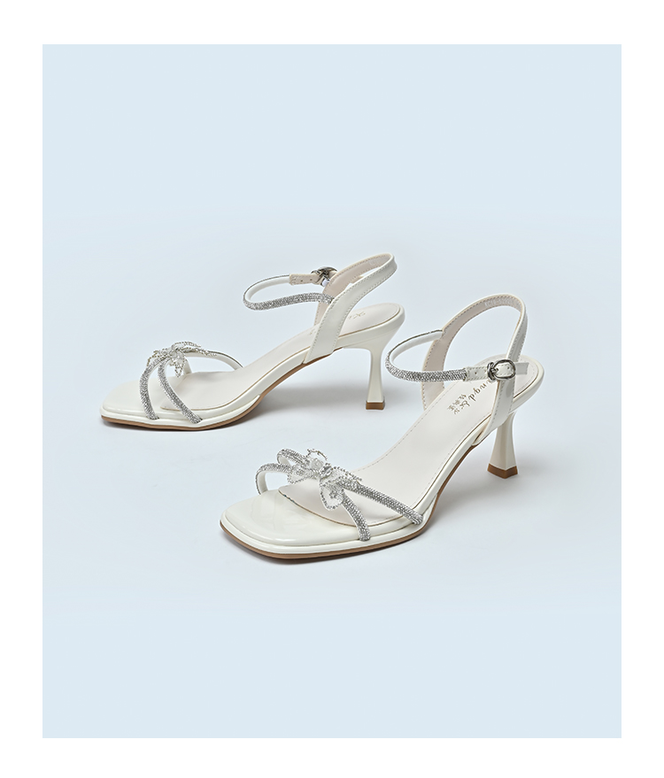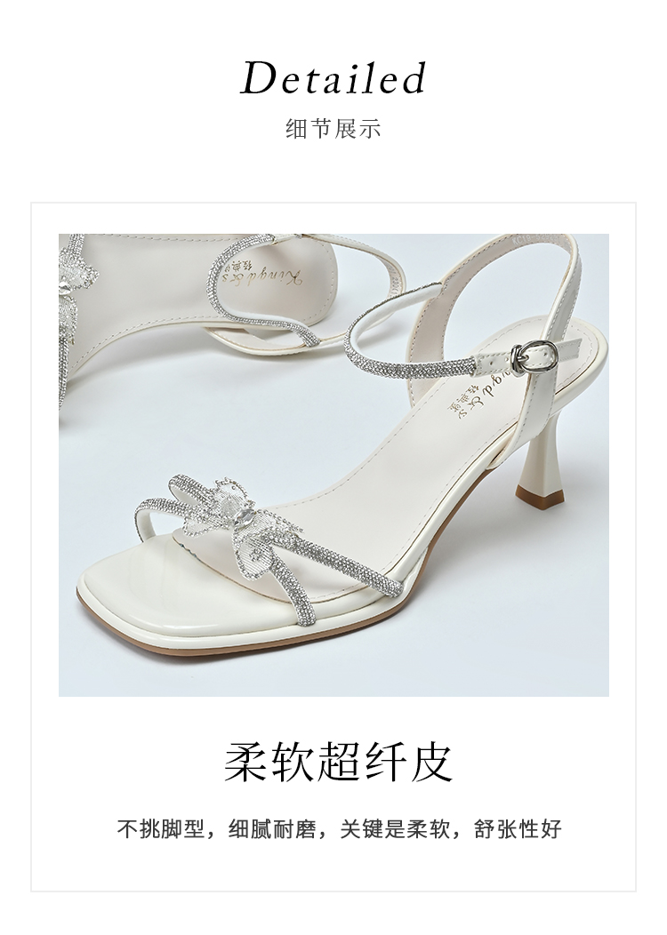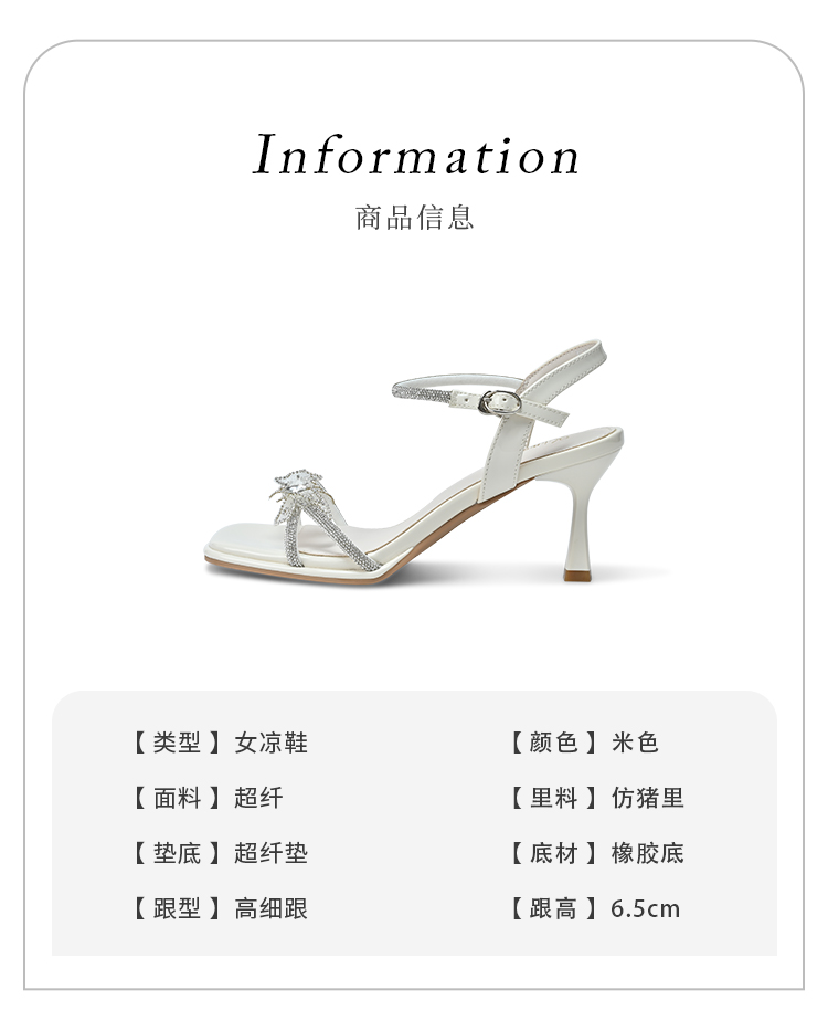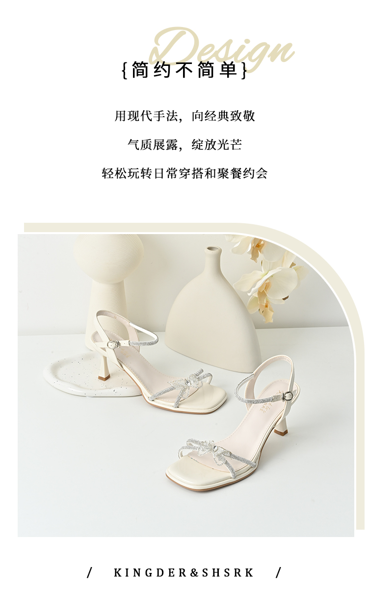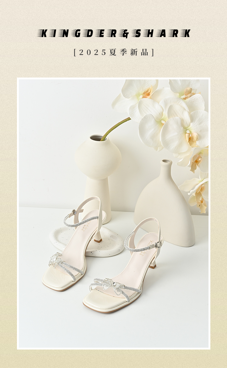 经典鲨2025年夏季新品甜美蝴蝶结6.5cm气质细高跟时装凉鞋女KC19-529201