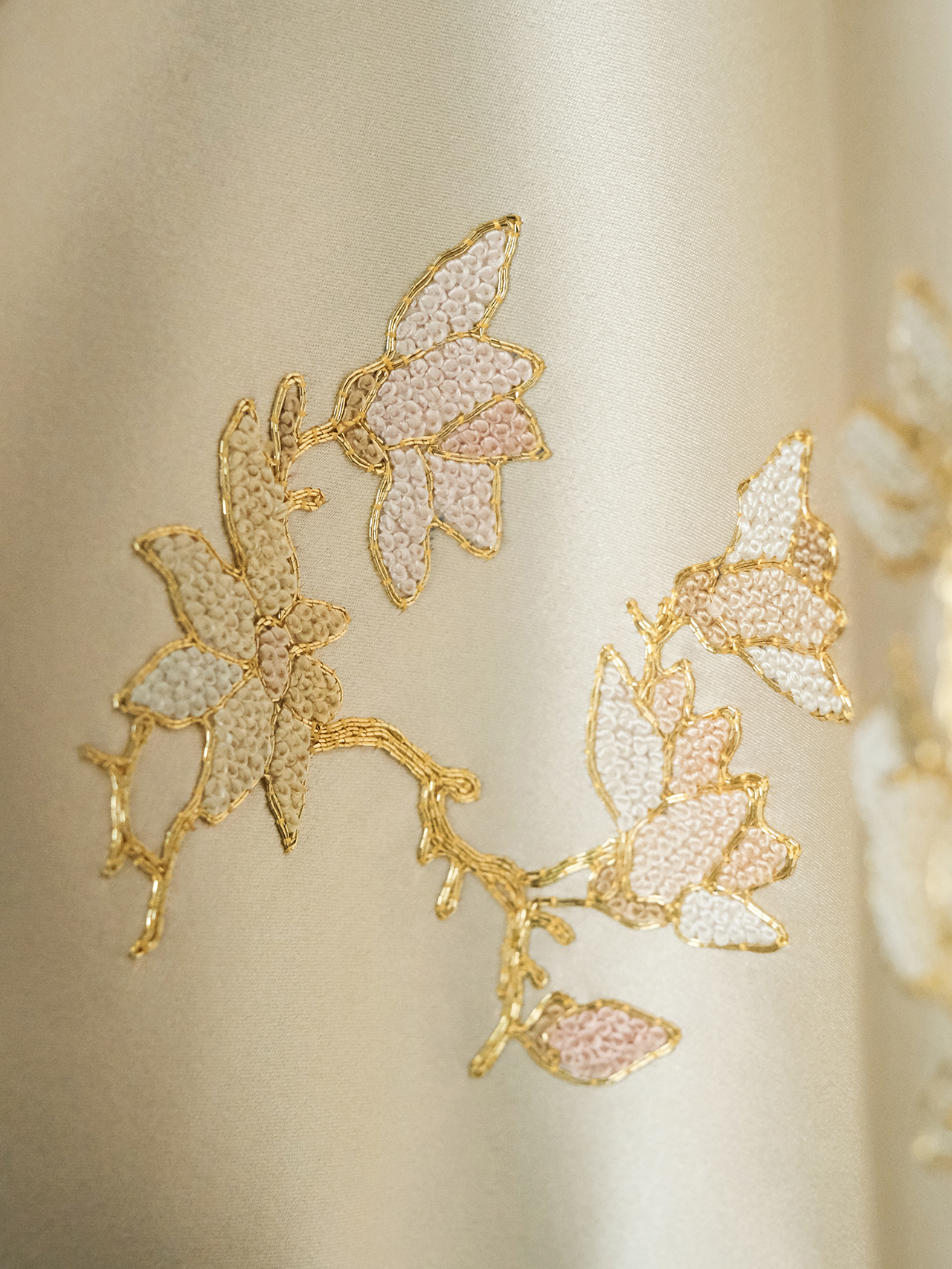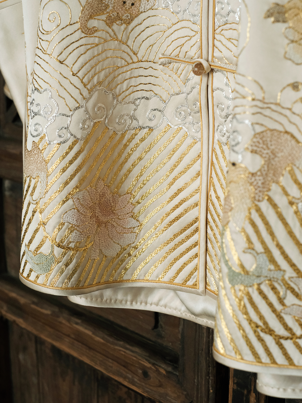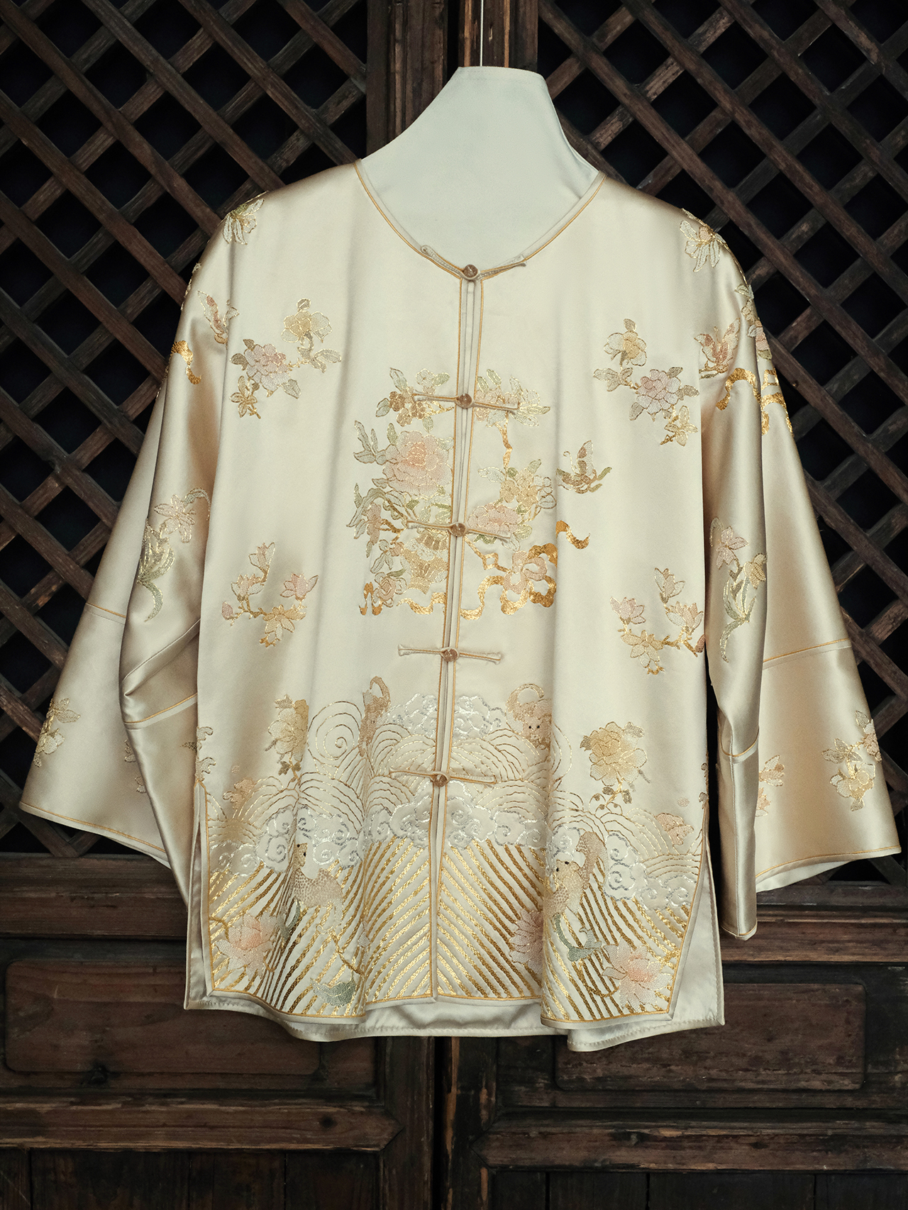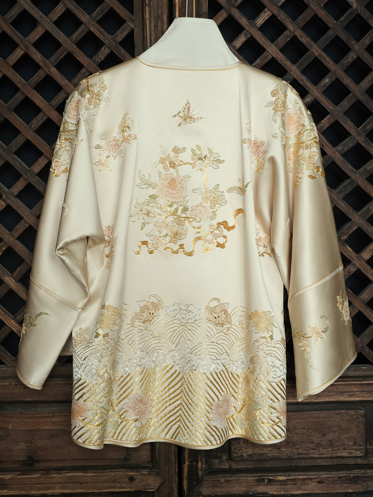 盛唐牡丹大师系列| 重工盘金江崖海水纹打籽绣外套-香槟色