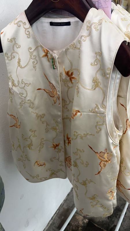 盛唐牡丹 | 香槟色缠枝福蝶真丝马甲