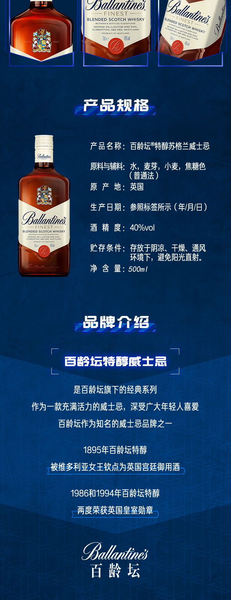 英国百龄坛特醇威士忌特调 40%vol