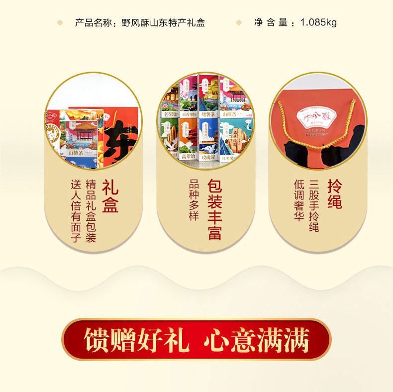 野风酥山东特产礼盒装1.085kg 泰安泰山土特产零食特色小吃大全送人