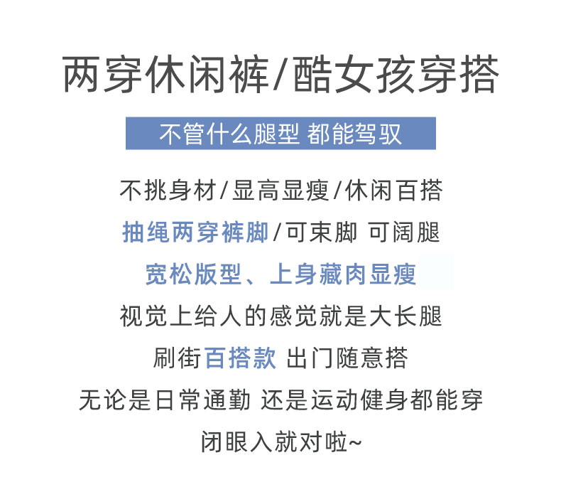【1条裤子 2种穿法】百变两穿抽绳卫裤 阔腿束脚运动休闲裤 时尚百搭 显高显瘦